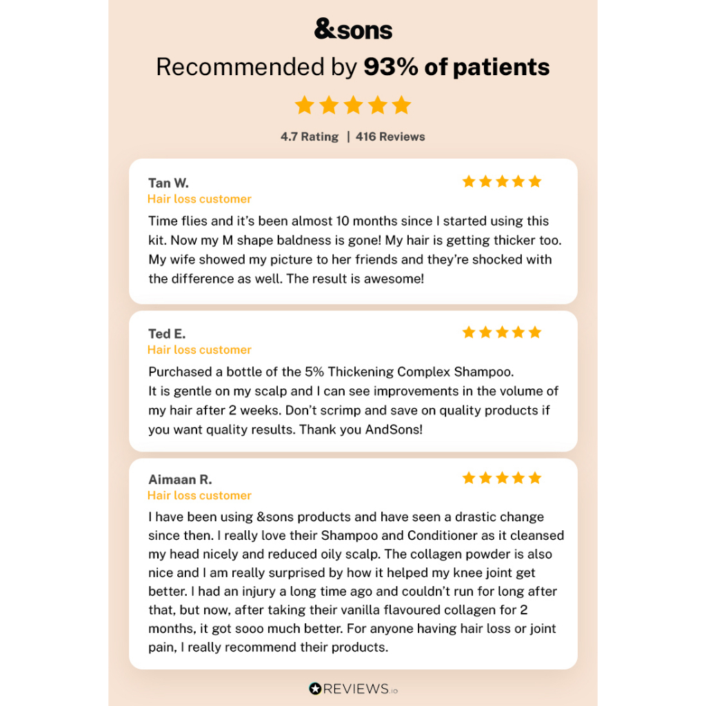 andSons Intense Hair Growth Trio Kit (Hair Growth Shampoo 200ml + Conditioner 200ml + 3% Redensyl Serum 60ml)