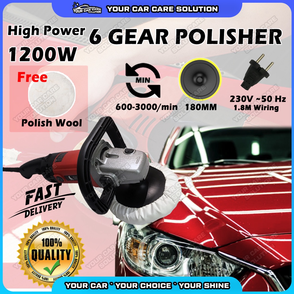 6 Gear Speed Dise Polish 240V 1200W Disc Wax Polisher Machine High Speed Waxing Mesin Polish Kereta 18cm Car Care DIY