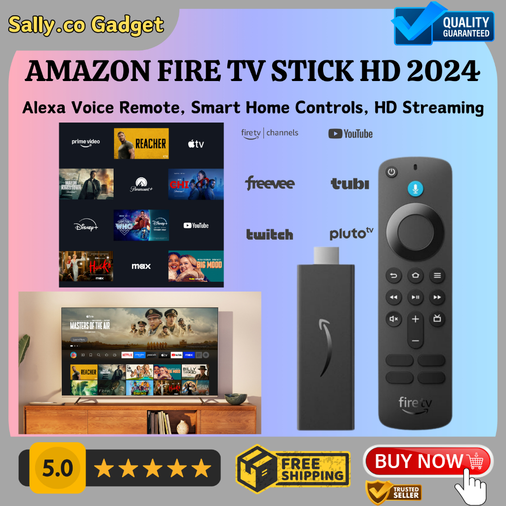 Amazon Fire TV Stick HD 2024 Alexa Voice Remote Smart Home Controls HD Streaming
