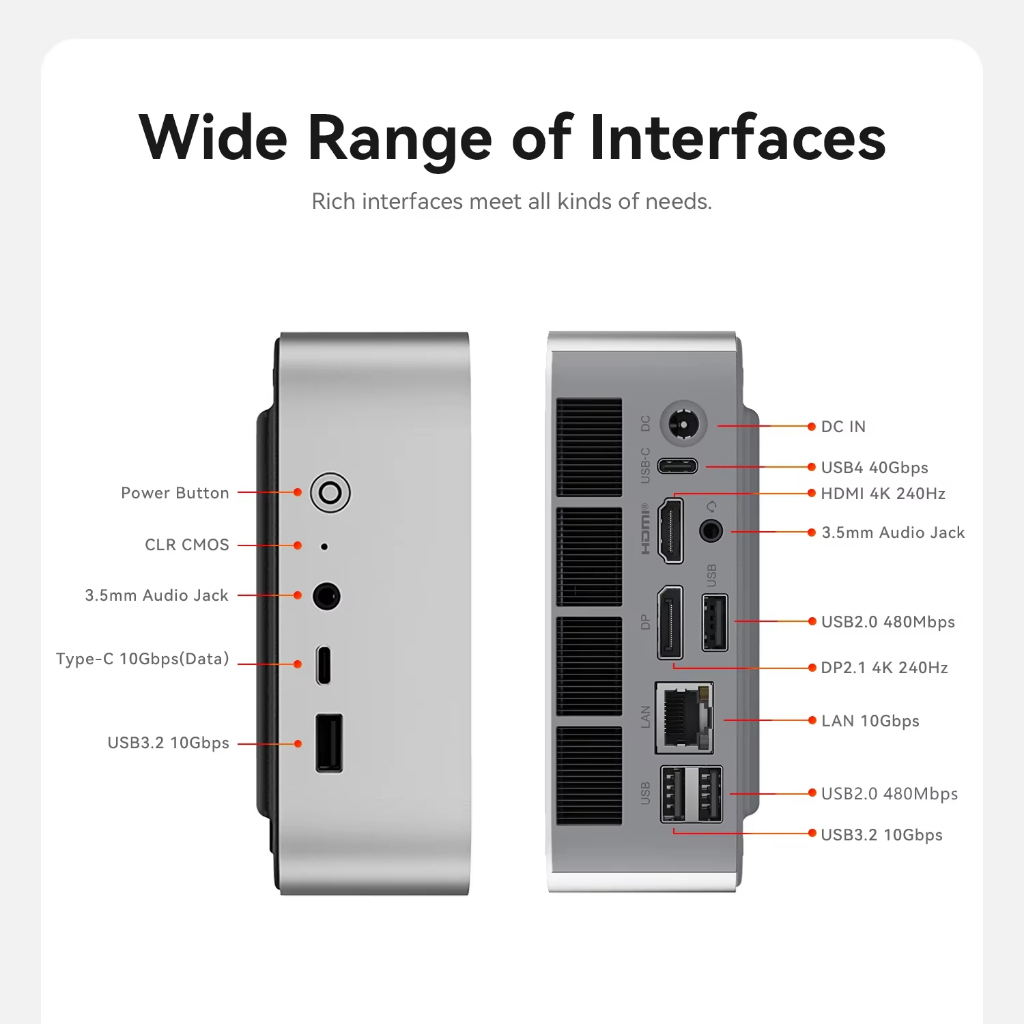 Beelink SER9 MAX Mini PC AMD Ryzen7 H 255 SODIMM DDR5 5600 MT/s M.2 SSD WiFi6 BT5.2 USB4 10Gbps LAN Desktop Computer