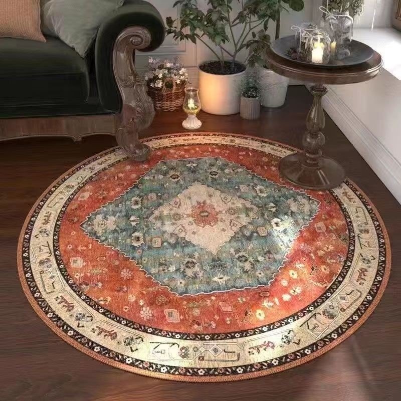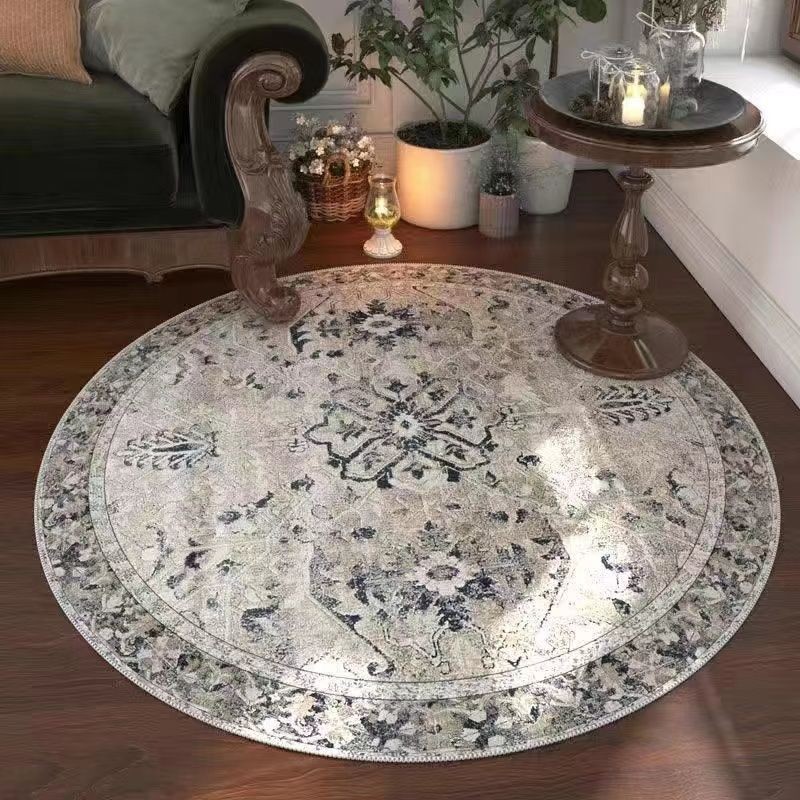 Round Rug Circle Area Rug Floor Mat Carpet Distressed Non Slip Area Rug Round Rugs for Living Room, Kitchen, Bedroom