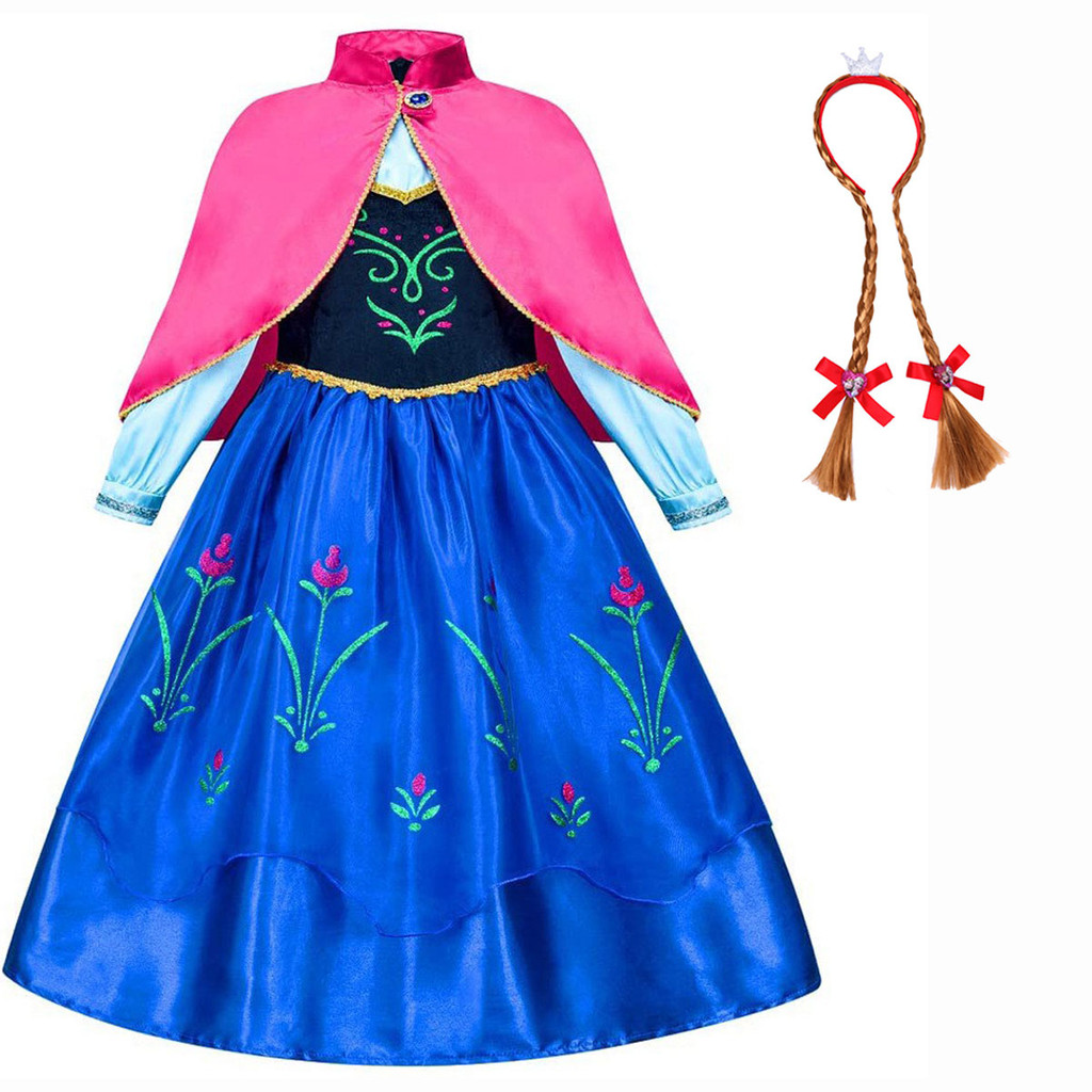 Halloween Carnival Dress For Girl Frozen Anna Anna Rose Red Dress Bring a Shawl Gown Princess Dress Children Clothing