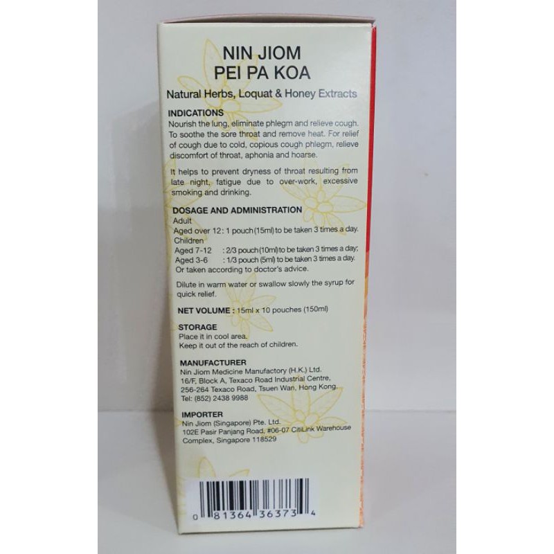 NIN JIOM PEI PA KOA convenient pack 念慈菴枇杷膏便利装 10's exp 05/2028