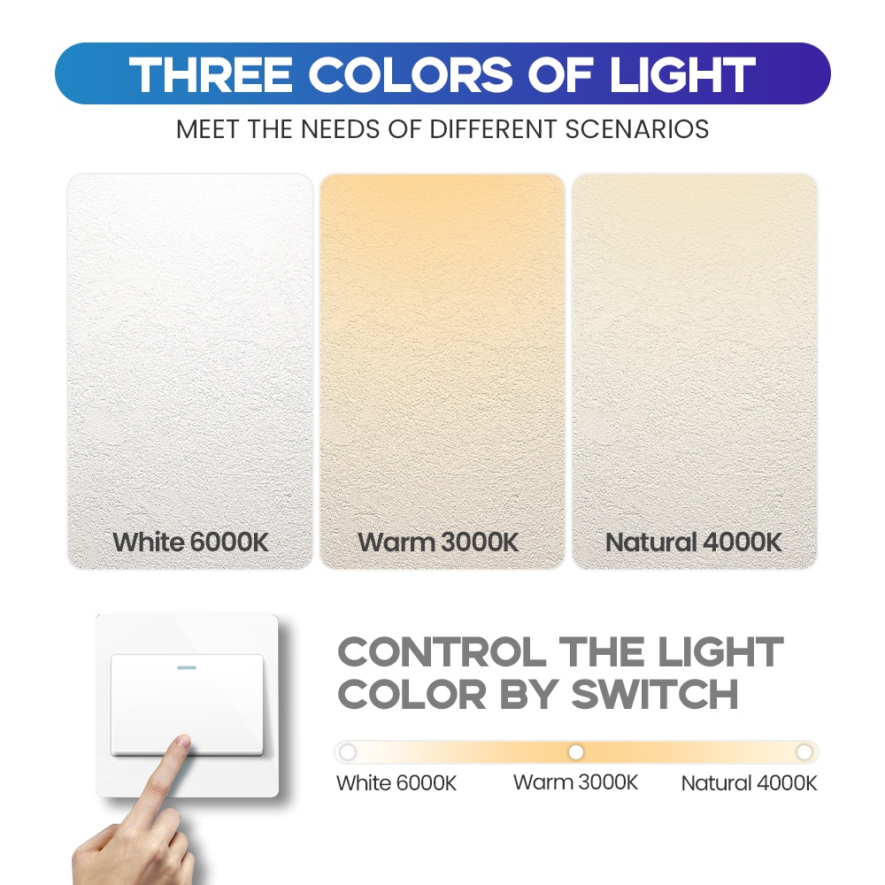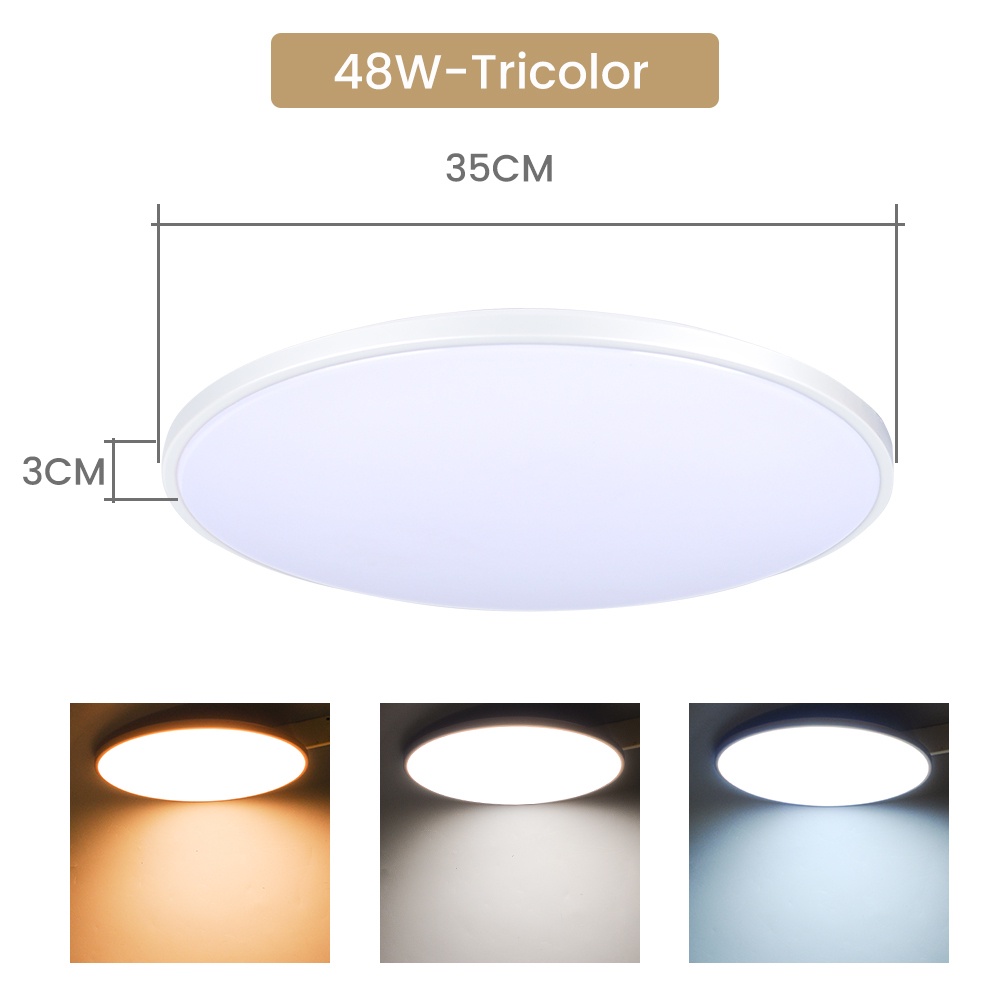 【SG Stock】Tricolor Change Fully Sealed LED Ceiling Light 48W 36W 20W White Moisture-Proof Surface LED Light for Room