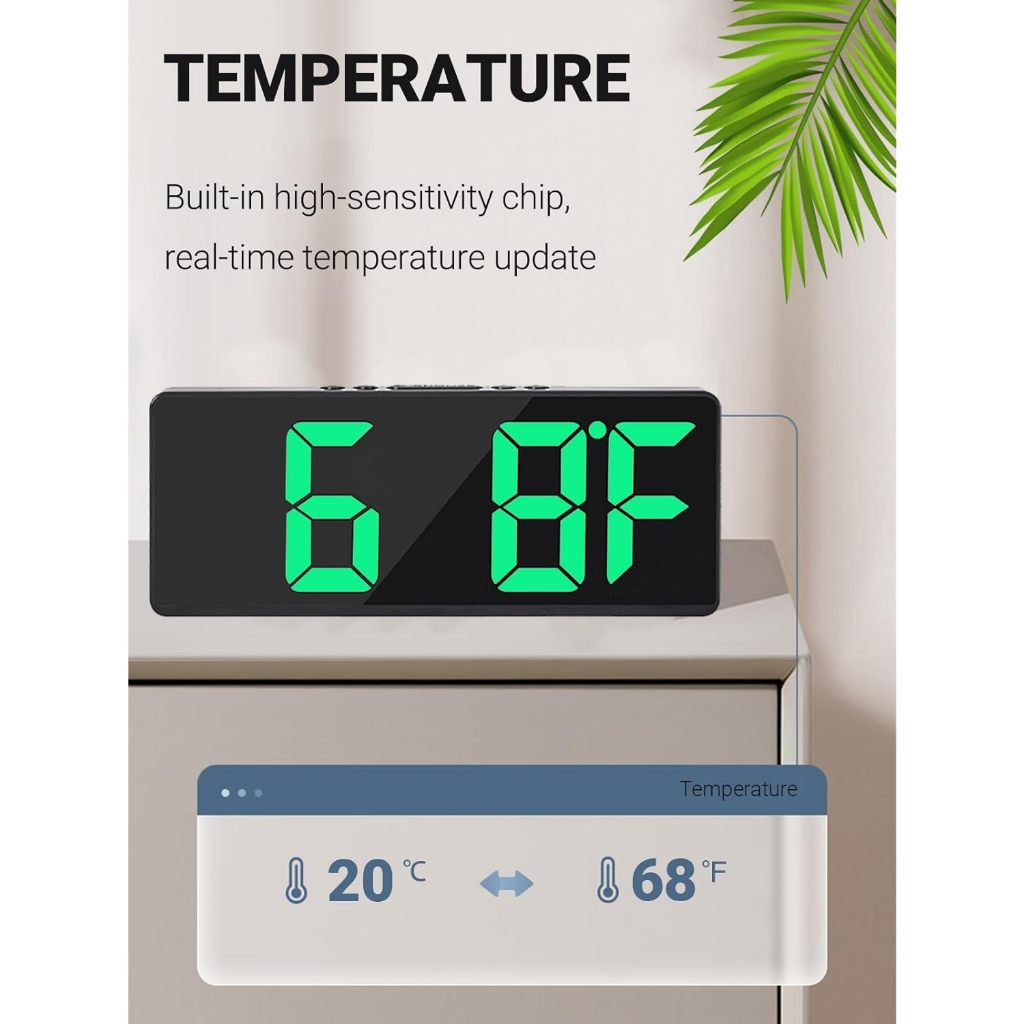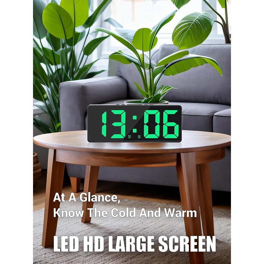 【SG】Digital Alarm Clock Large LED Clock with Temperature and Adjustable Brightness for Bedrooms Living Room Office Decor
