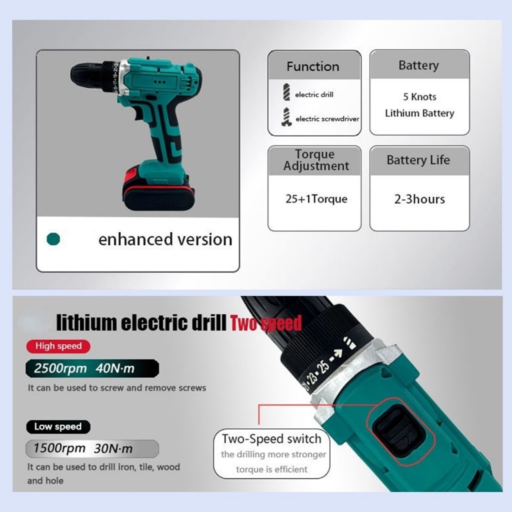 Electric drill cordless 588v Electric Drill Power Screwdriver Drill Impact Drill Cordless Drill Set Professional Hand Drill Tool with Battery