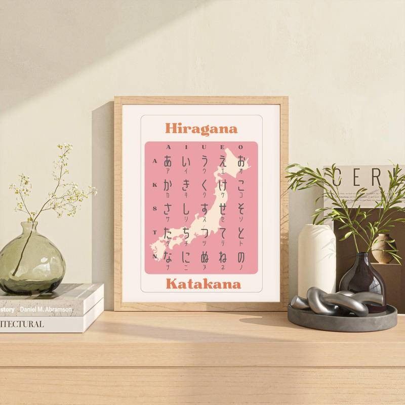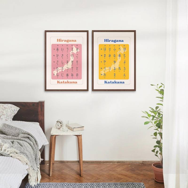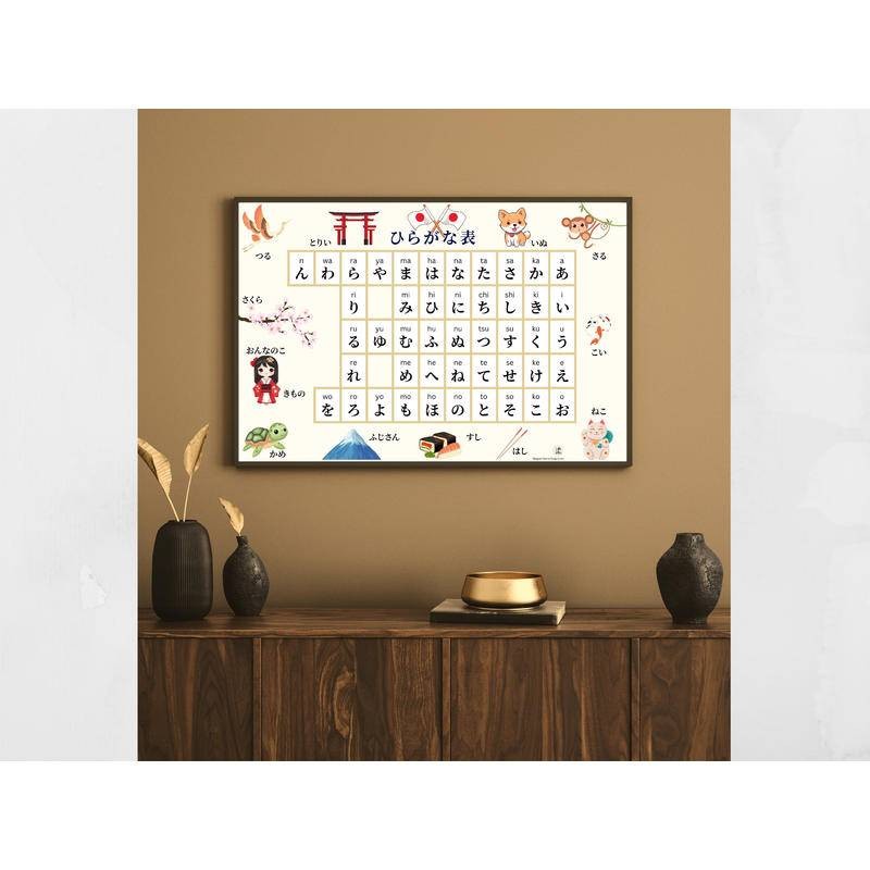 Japanese Hiragana chart canvas print posters wall art for classroom language chart for kids for students bilingual alphabet