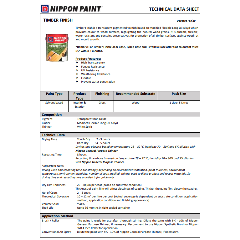 NIPPON WOOD STAIN, GLOSS FINISH, (TIMBER FINISH) 1 LITER FROM RM 27.90