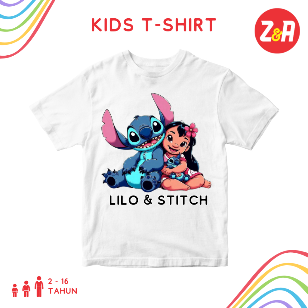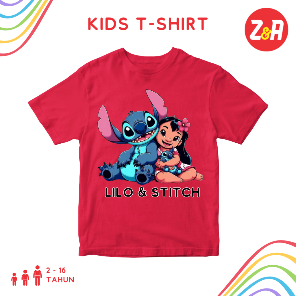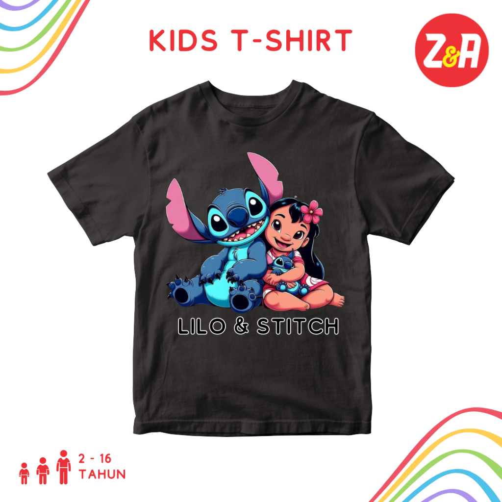 LILO & STITCH Kids T-Shirt | Disney Lilo and Stitch Cartoon Short Sleeve Kids Top | T-shirts for Boys and Girls Ages 2 to 16 Years | Lilo & Stitch Cartoon Kids Clothes | Unisex 30s Combed Cotton Kids T-Shirt