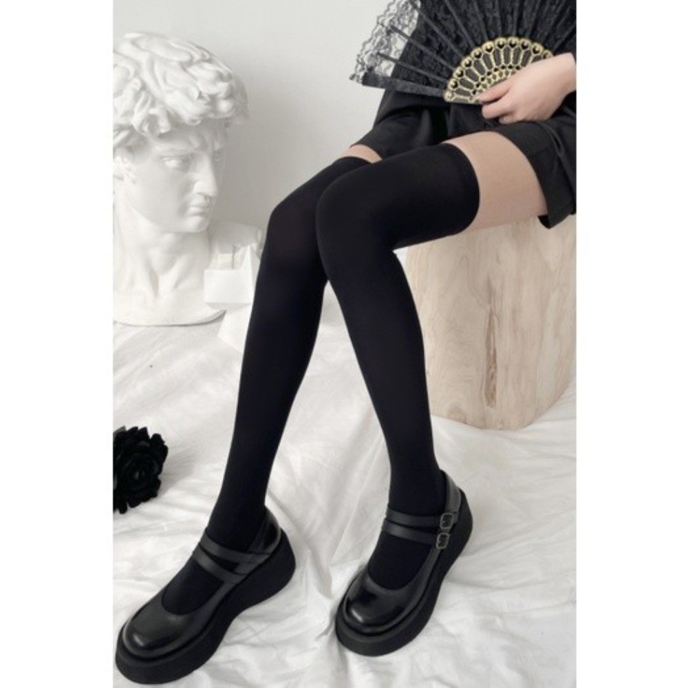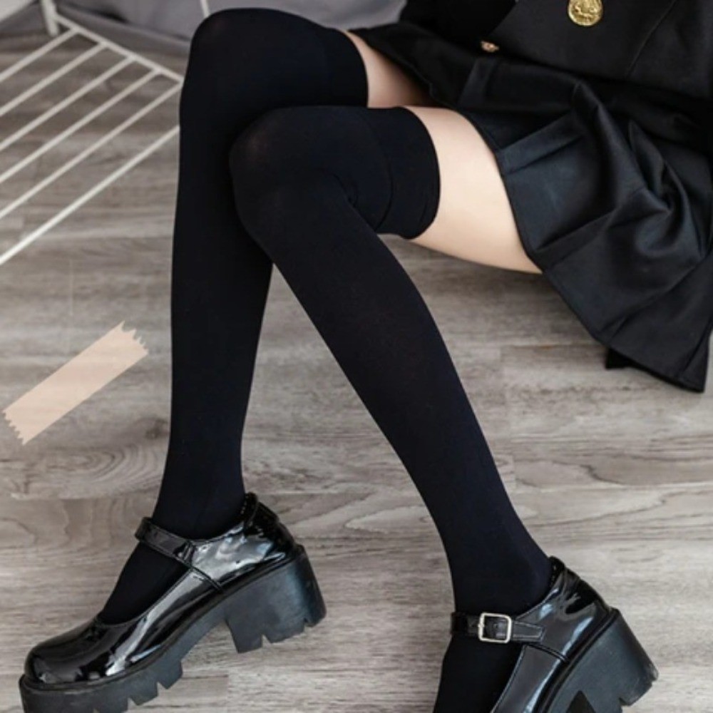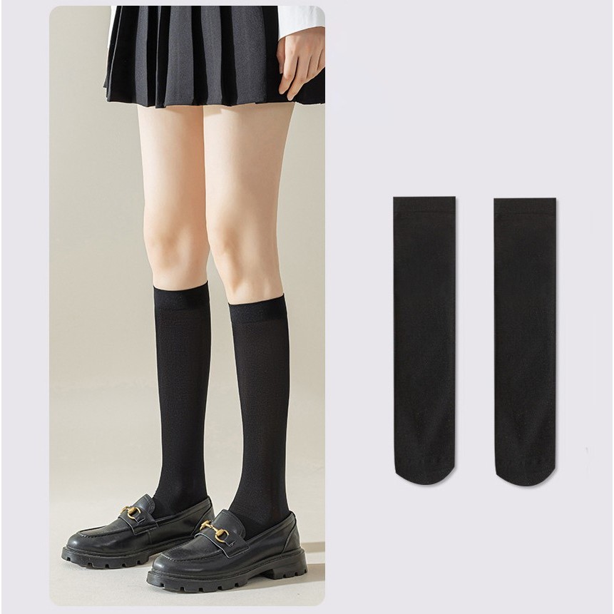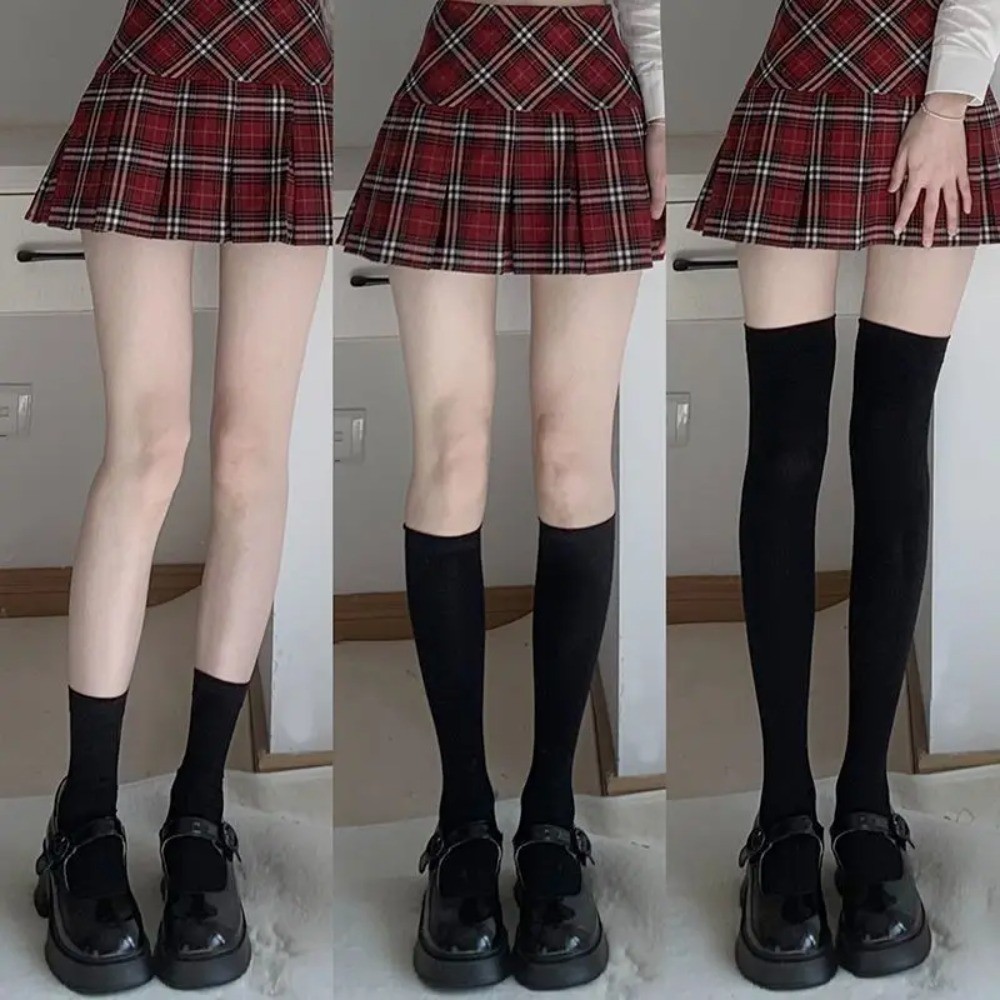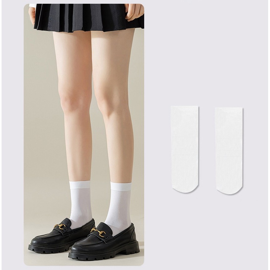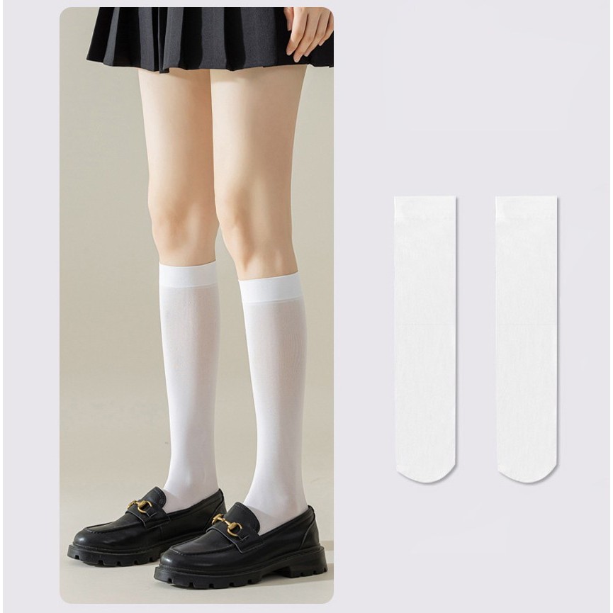 JK Students Fashion White & Black Velvet Calf Socks - Summer Multi-size Crew