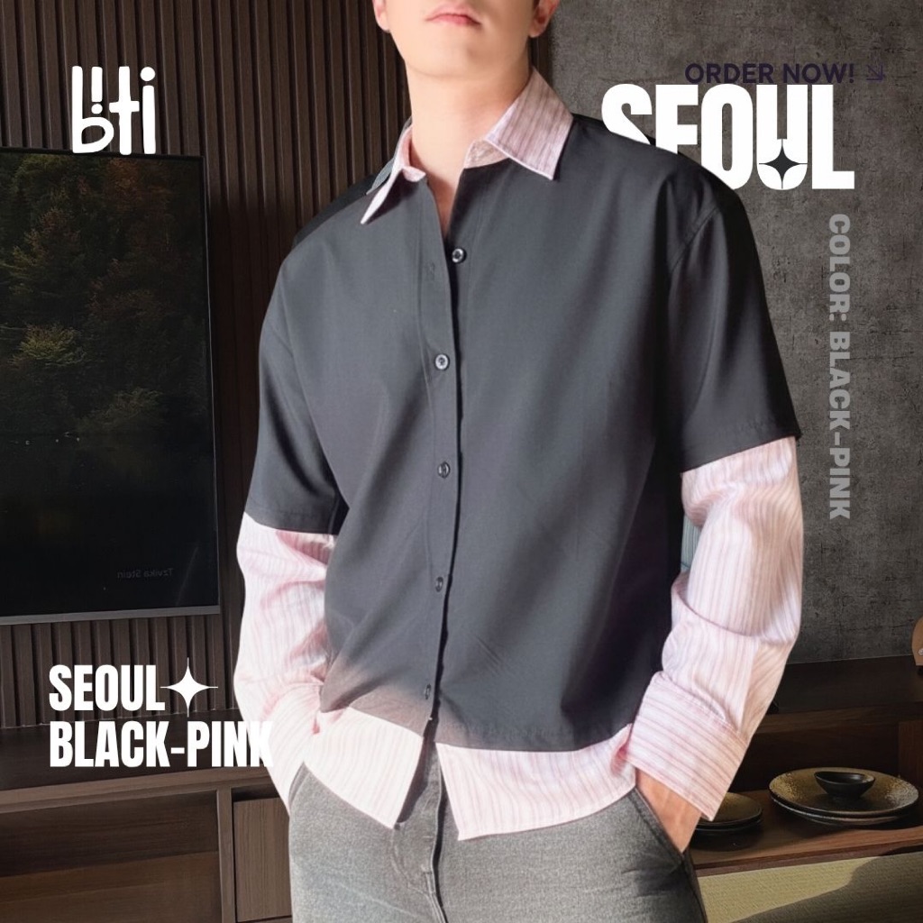 KEMEJA BITI Seoul Shirt | Men's Black Striped Long Sleeve 2 in 1 Layer Shirt