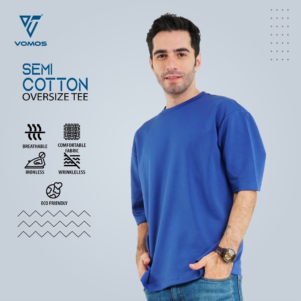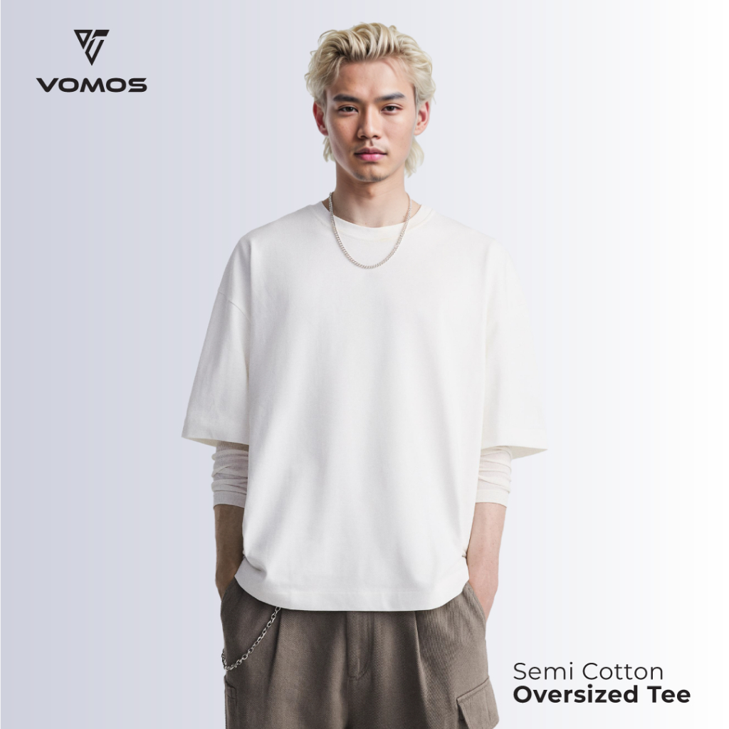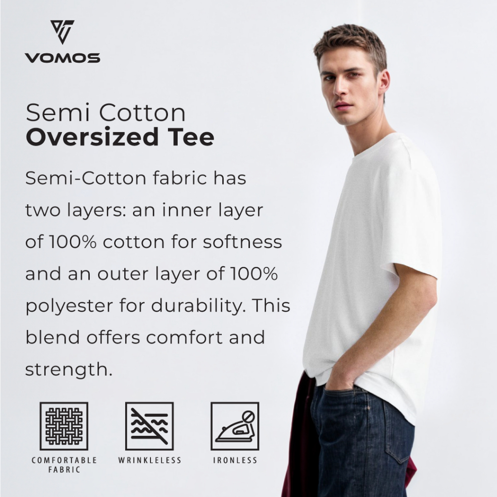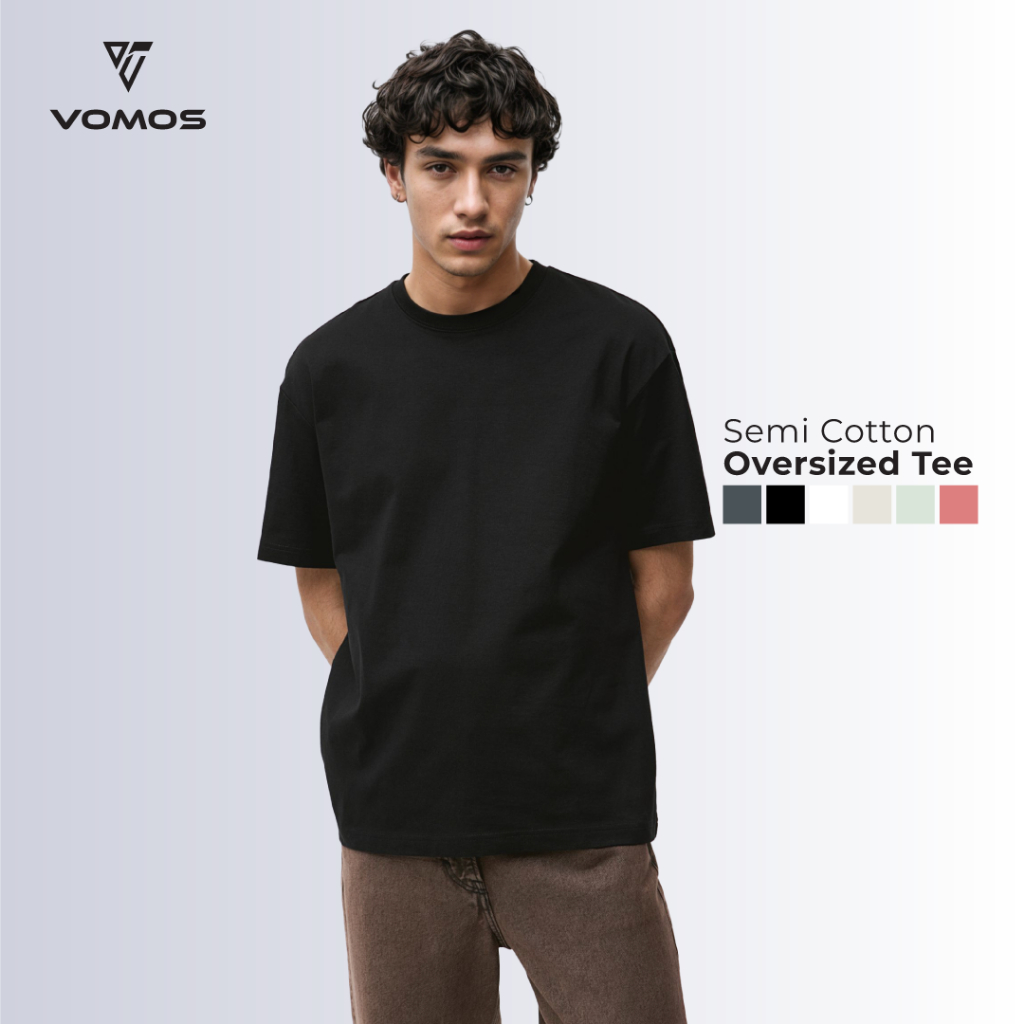 VOMOS Overfit Semi Cotton Ironless Oversized Plain Color Tee Men T Shirt
