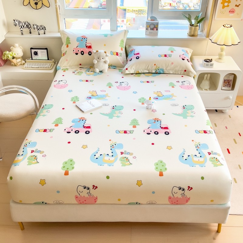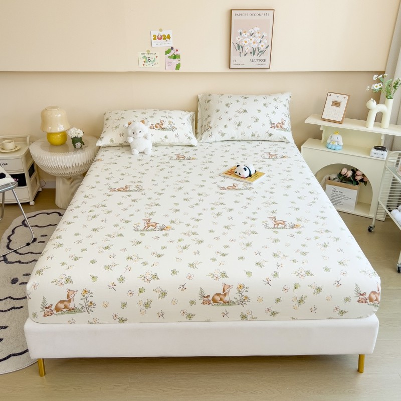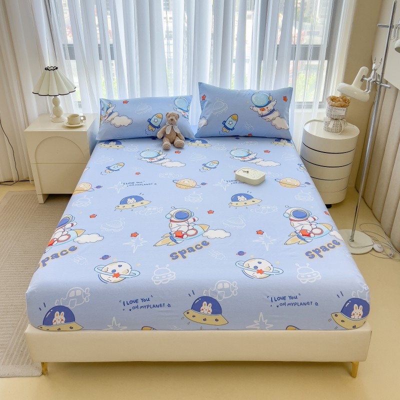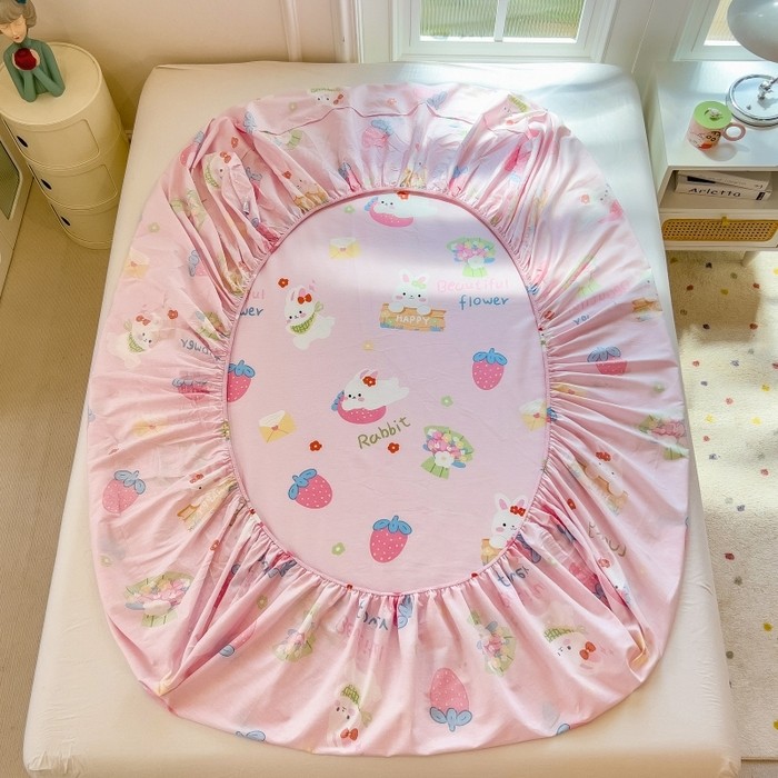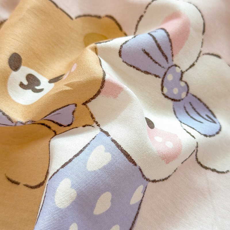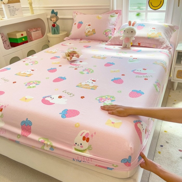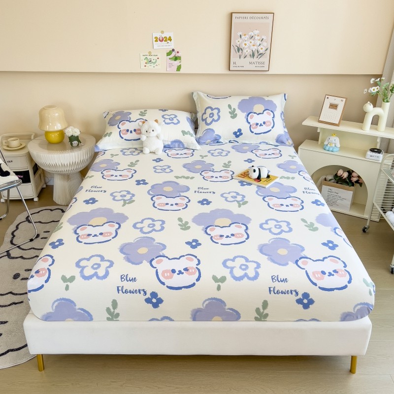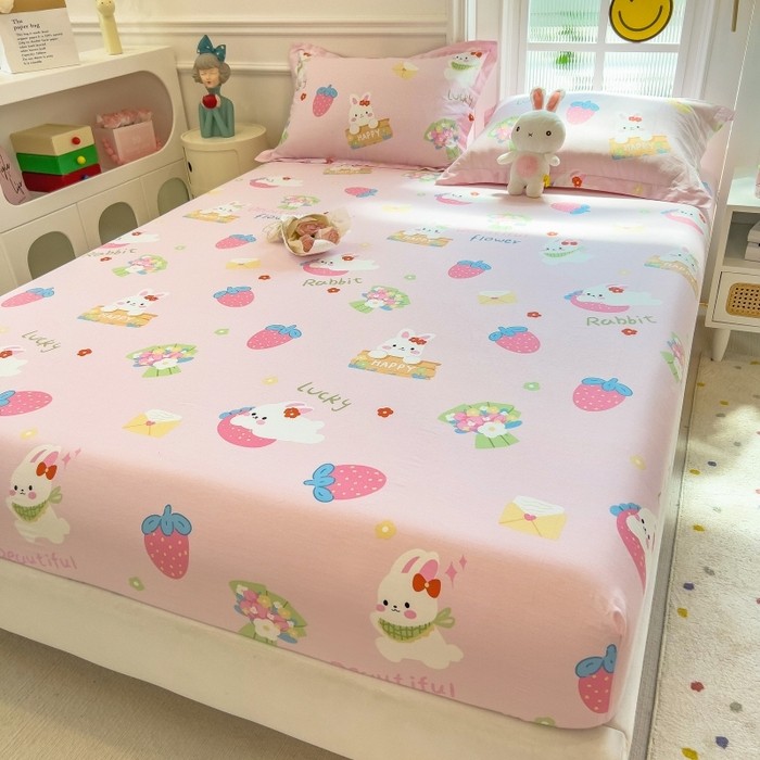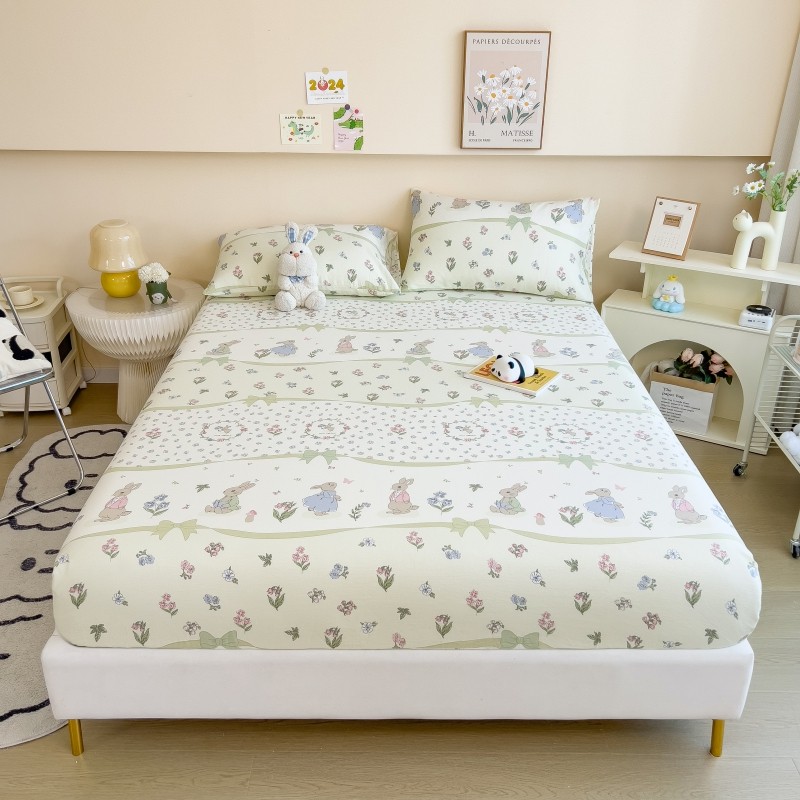 Happy bear rabbit Cute cartoon style 100% Cotton Fitted Sheet 800TC Skin-friendly Single /SuperSingle/ Queen / King Size pillowcase