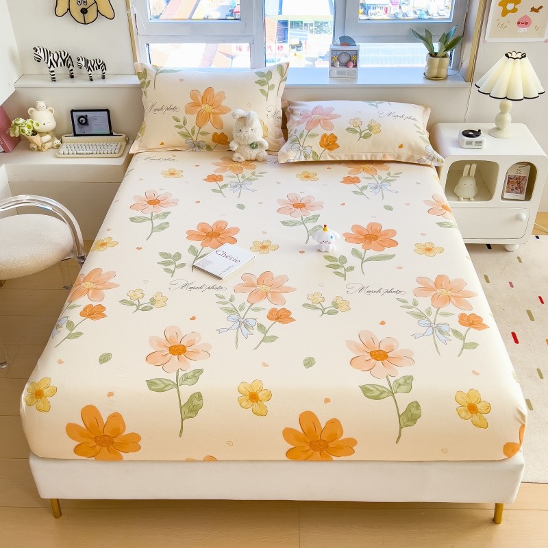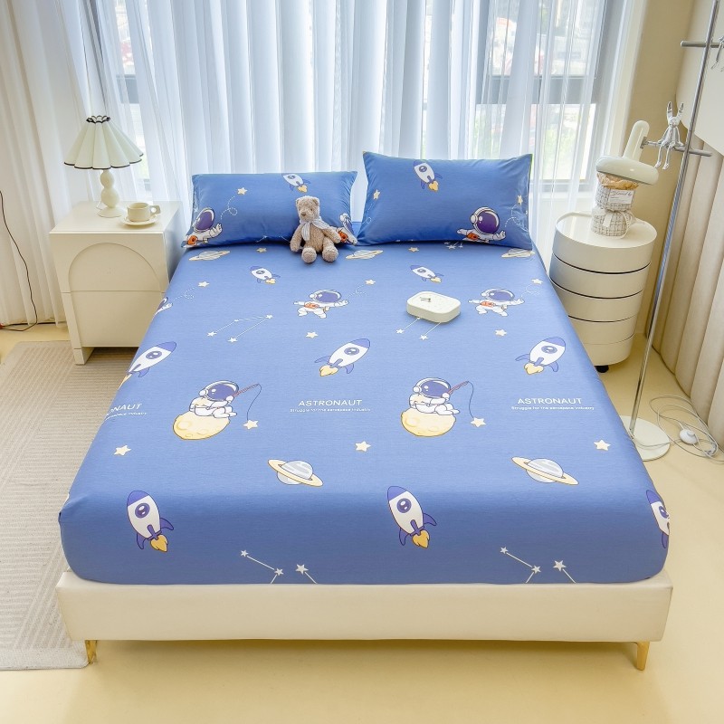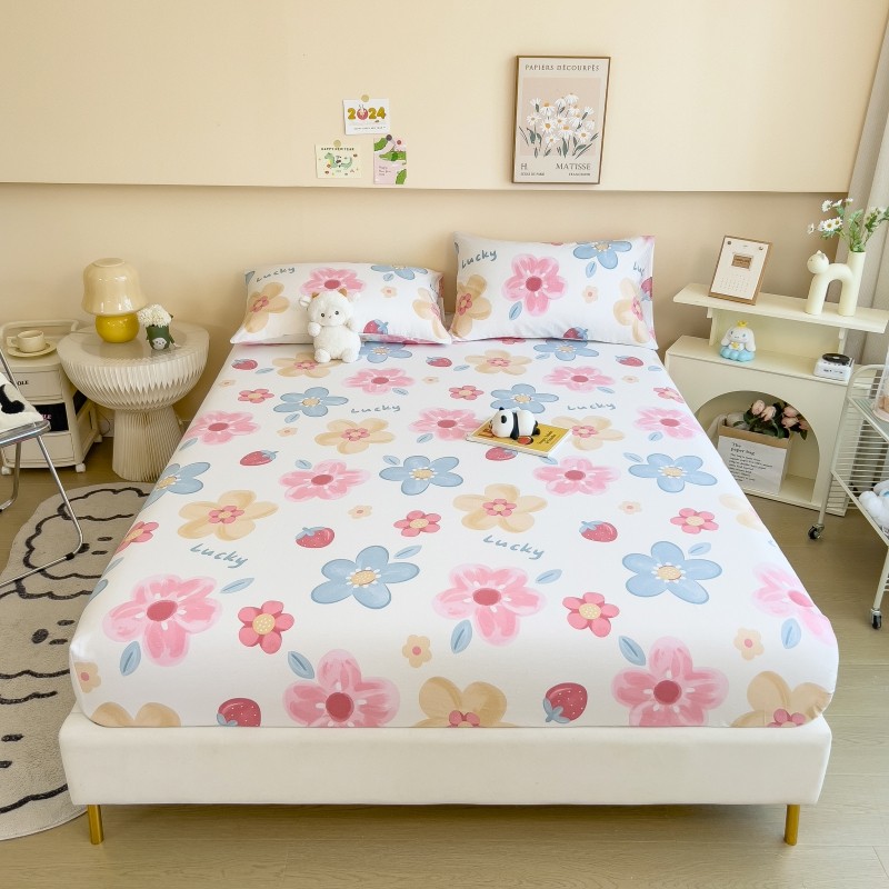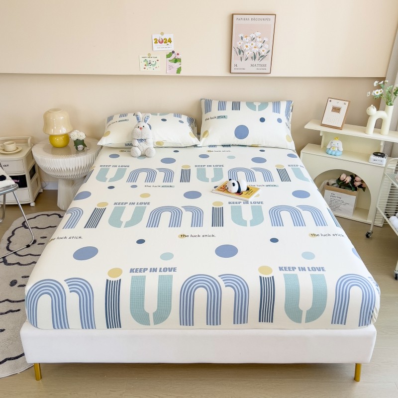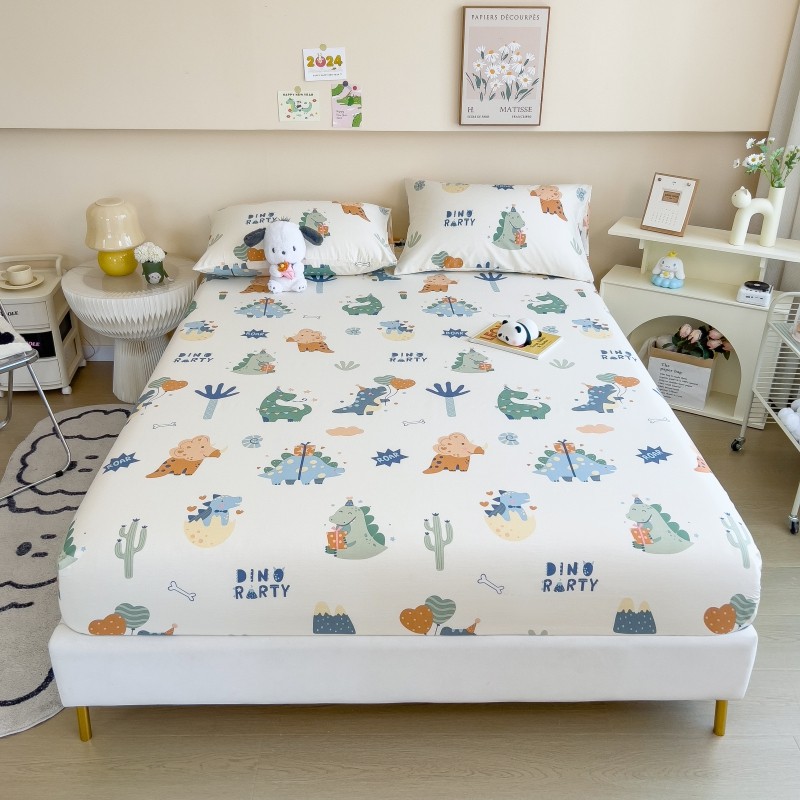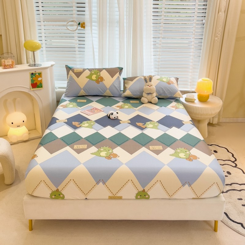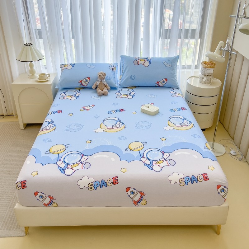 Happy bear rabbit Cute cartoon style 100% Cotton Fitted Sheet 800TC Skin-friendly Single /SuperSingle/ Queen / King Size pillowcase