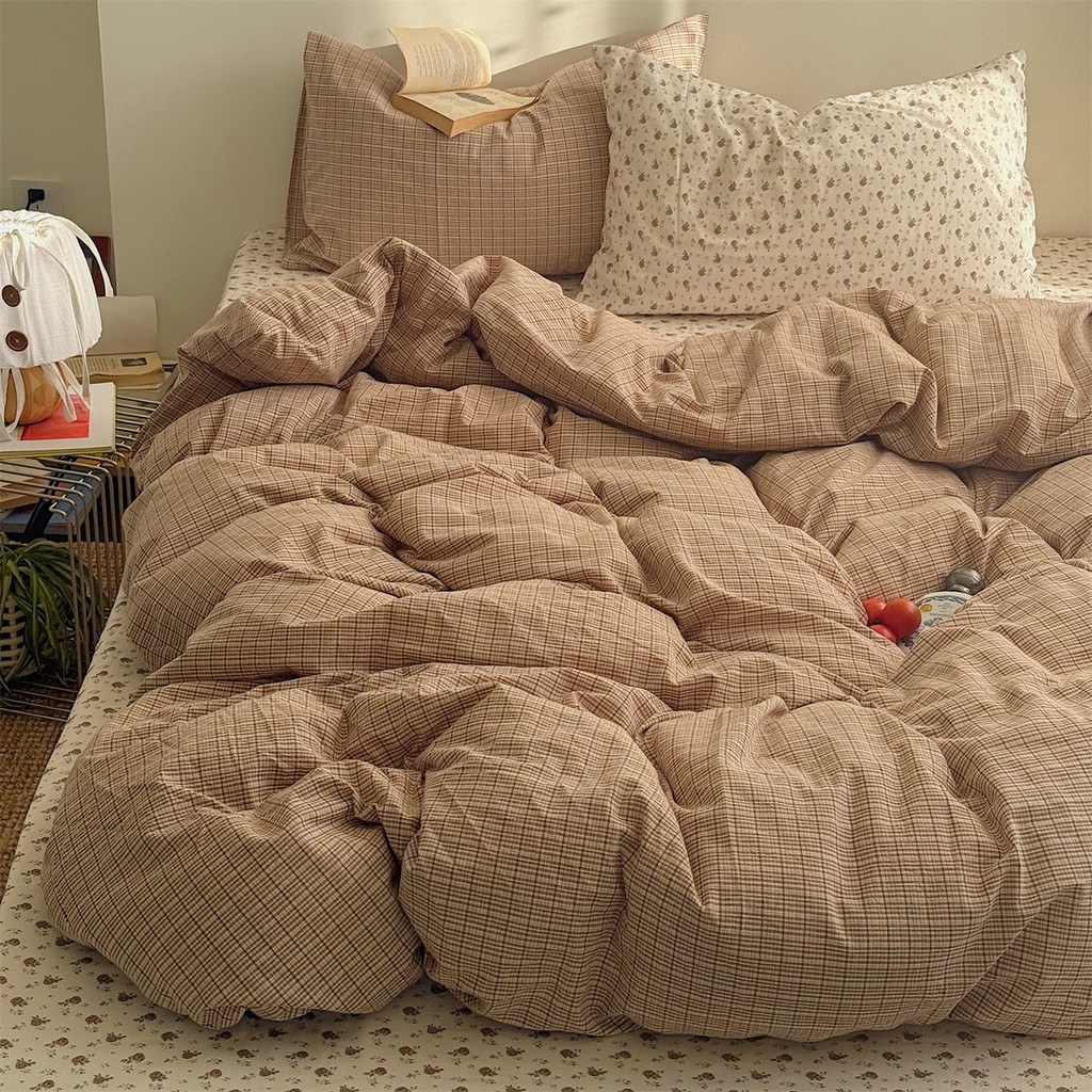 Ins Style Patchwork pink floral design Printed 100% Cotton Flat/Fitted Sheet Bed Set 4 in 1 bedsheet Single/Queen/King Bedsheet Set Cadar