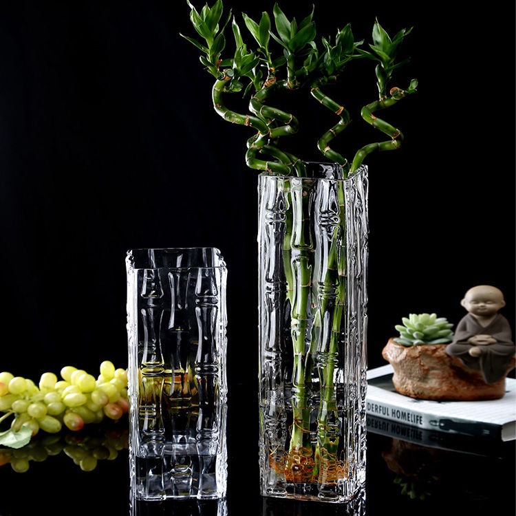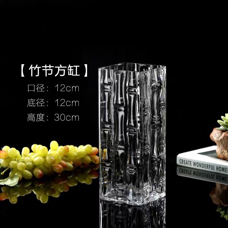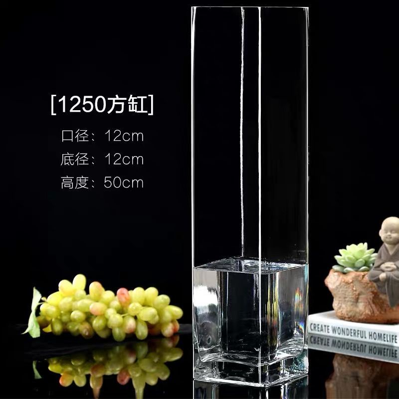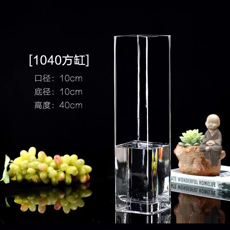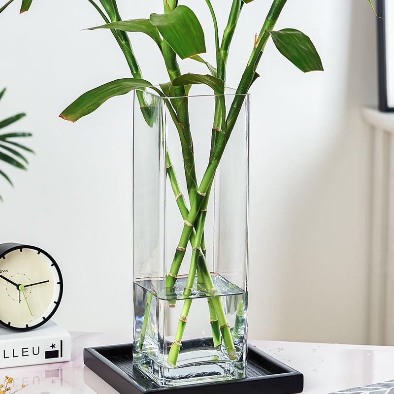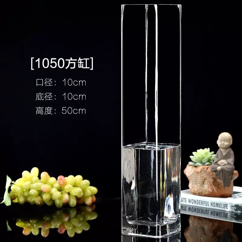 Lucky Bamboo Transparent Glass Thickening Vase 50cm Hydroponic Living Room Floor Crystal Decoration 40cm/Transparent Square Glass Vase / Flower Vase / Hydroponic plant glass
