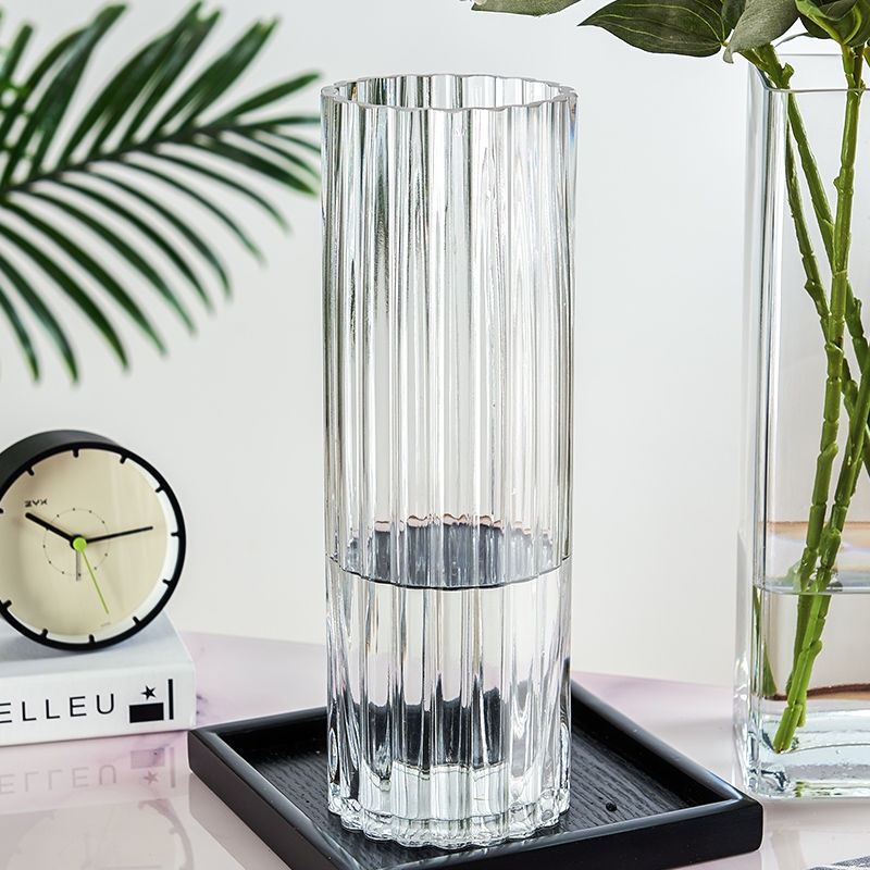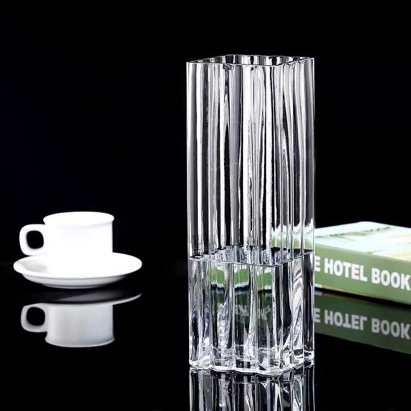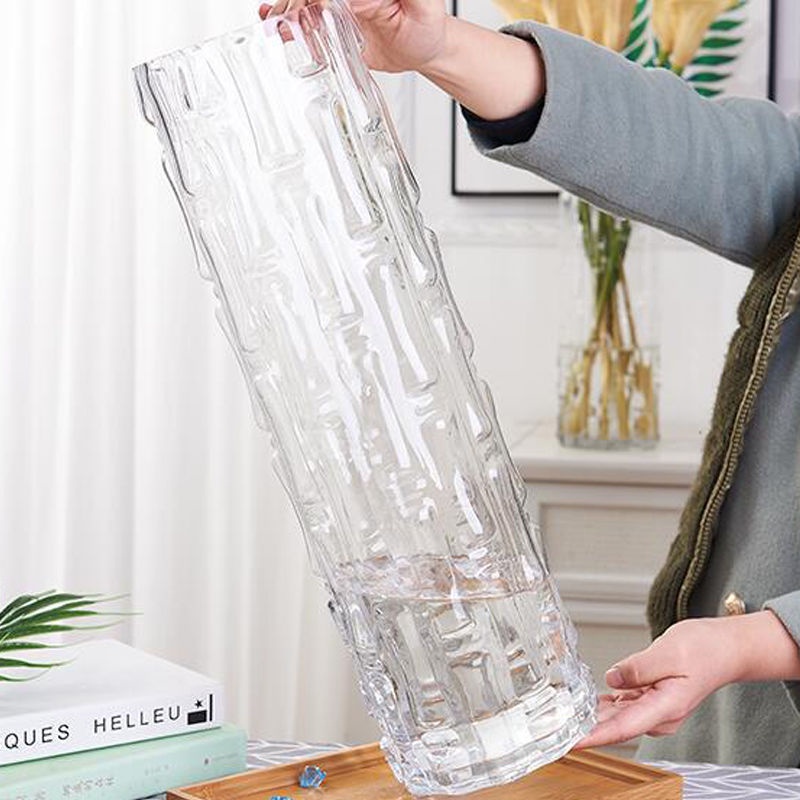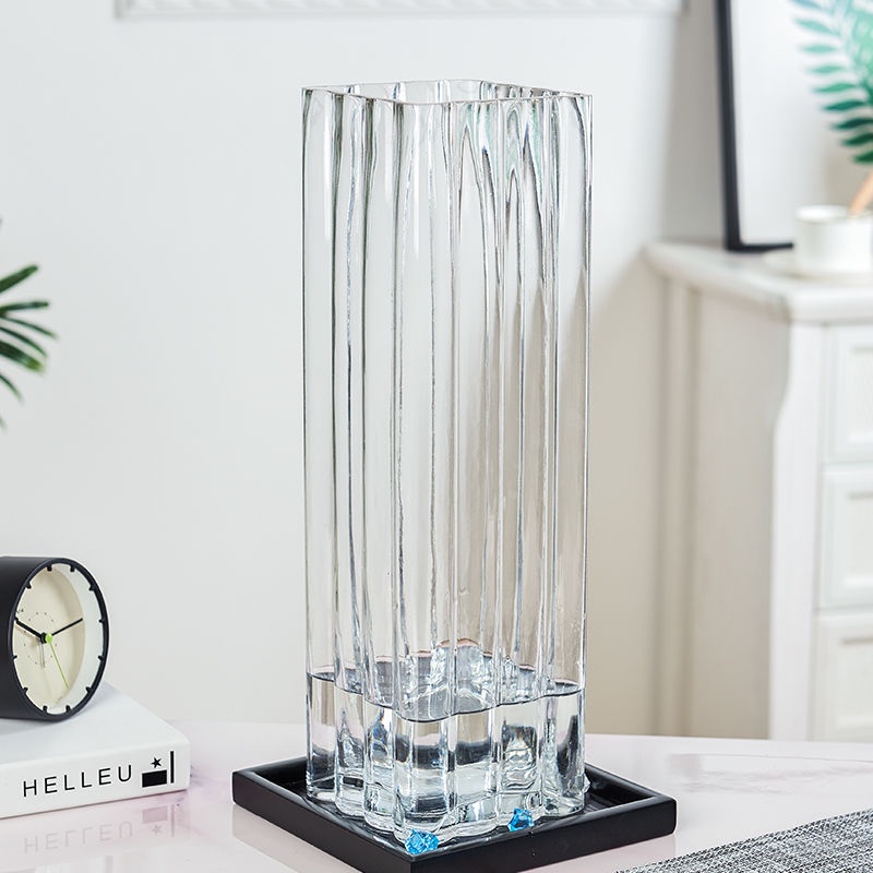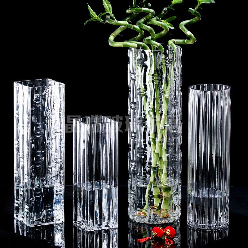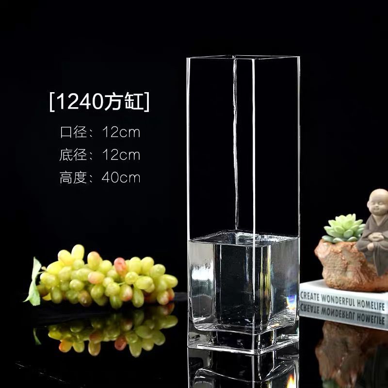 Lucky Bamboo Transparent Glass Thickening Vase 50cm Hydroponic Living Room Floor Crystal Decoration 40cm/Transparent Square Glass Vase / Flower Vase / Hydroponic plant glass