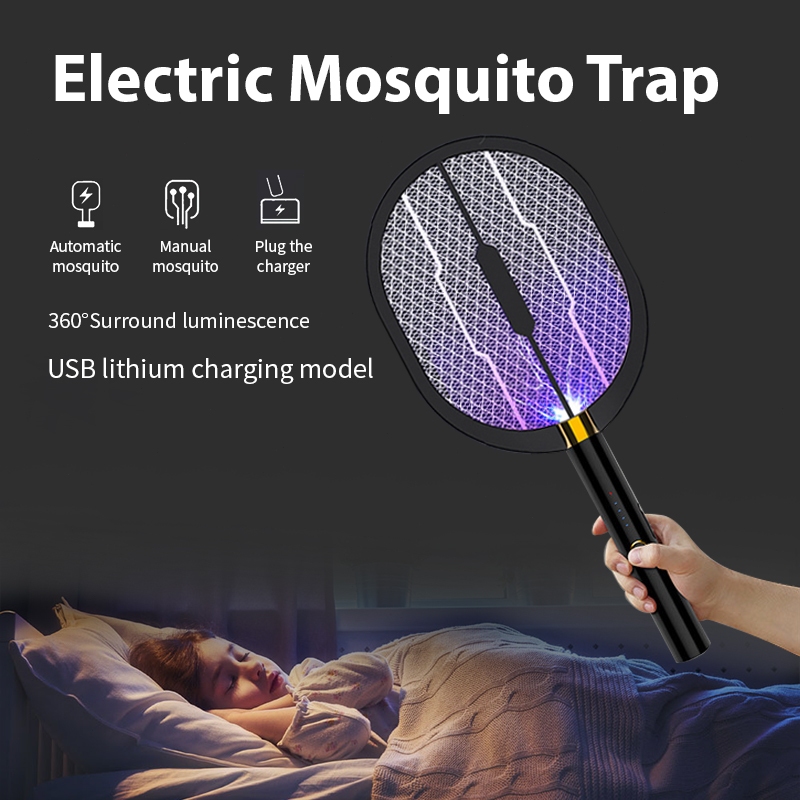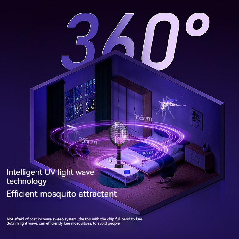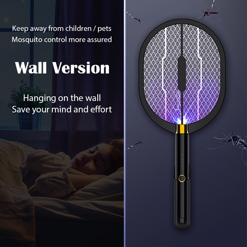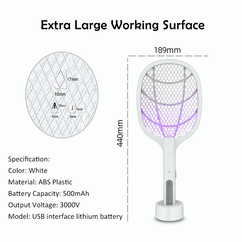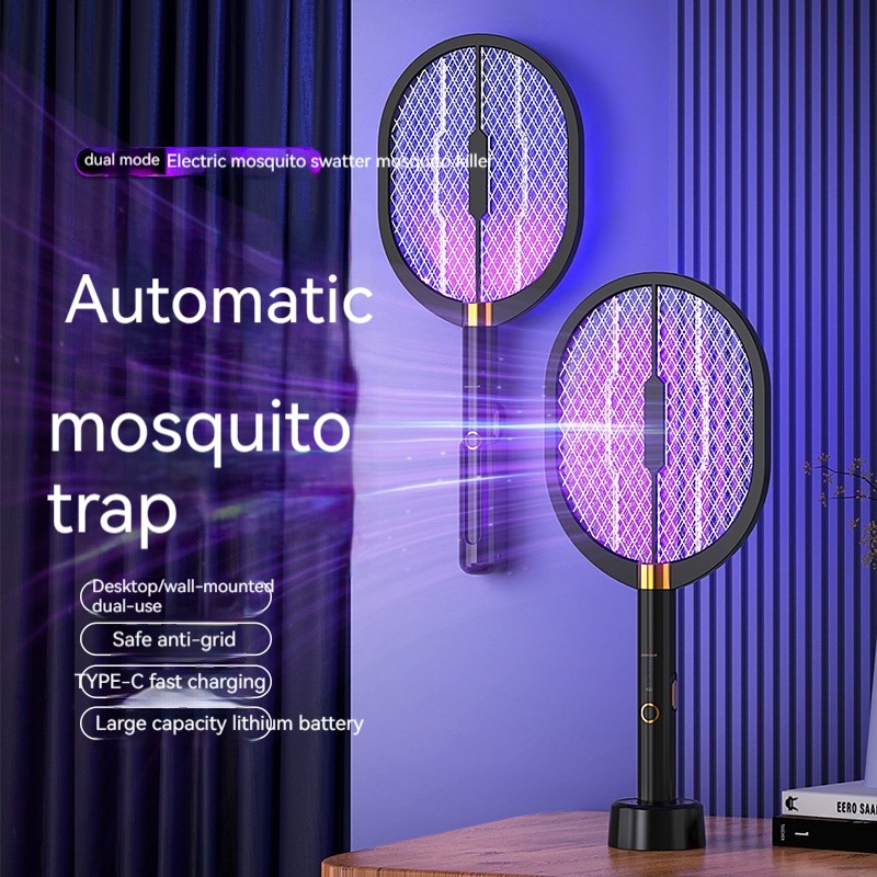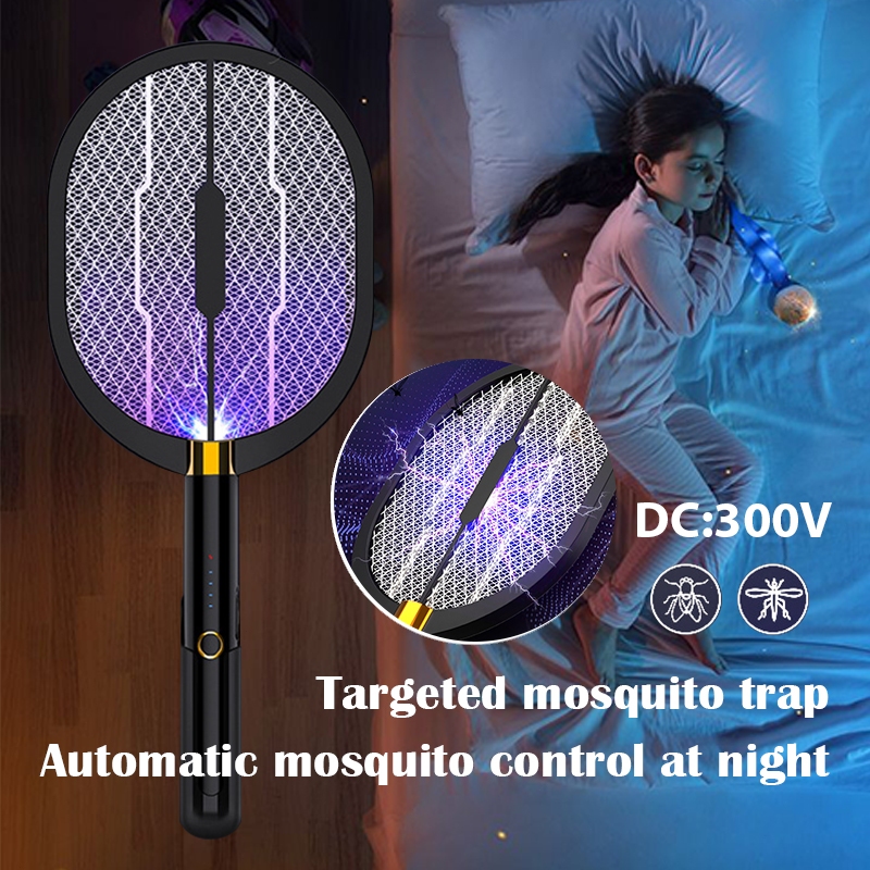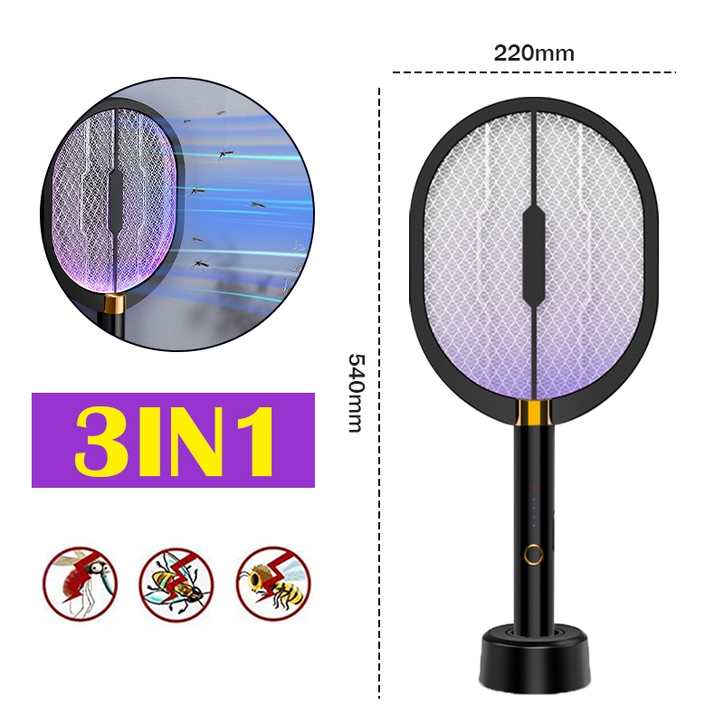 [With Base]3-in-1 Handheld Mosquito Racket Electric Mosquito Killer Fly Swatter Killer Racquet Dual-Mode USB Rechargable