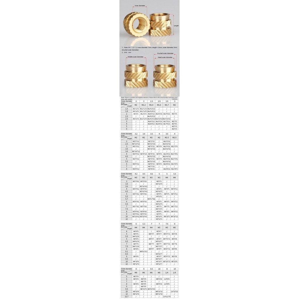 M4 M5 M6 M8 Brass Hot Melt Insert Knurled Nut Thread Heat Molding Double Twill Injection Embedment Nut For 3D Printer