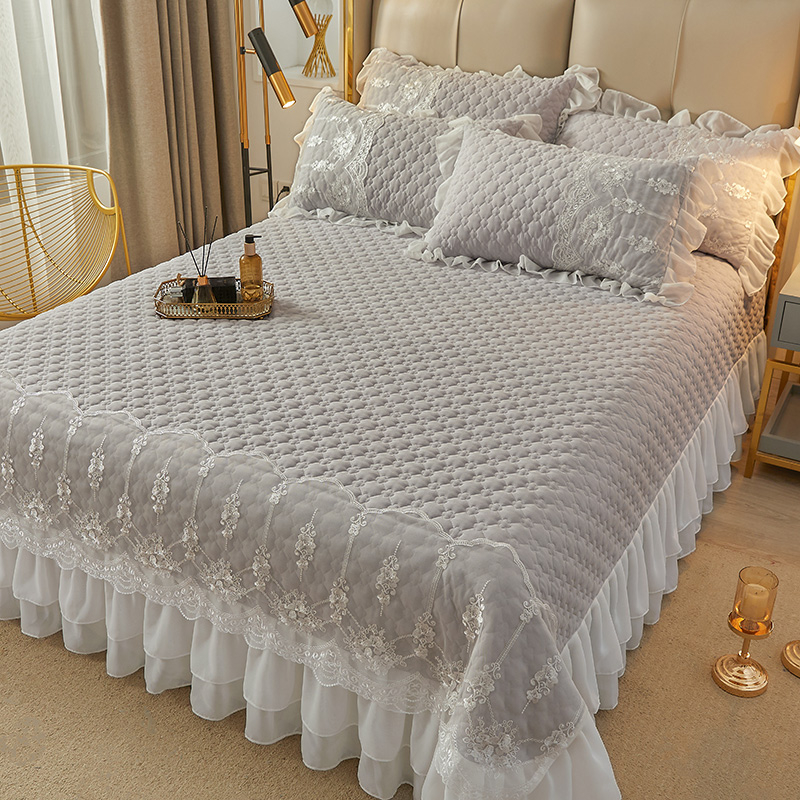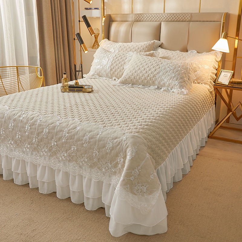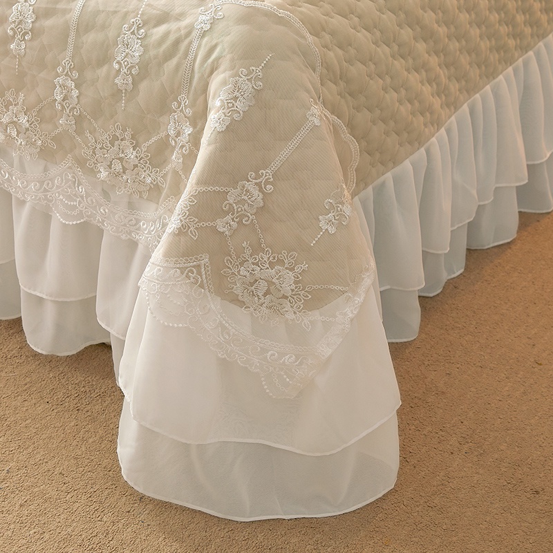 1 PC Princess Style Bedspread Queen/King /Super King Size White Color Double Lace Ruffles Quilting Mattress Cover/Blanket/Quilt/Pillowcase