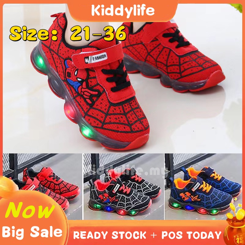 Kids Spiderman Shoes Boys Cartoon Sneakers LED Shoes Cool Superman Shoes