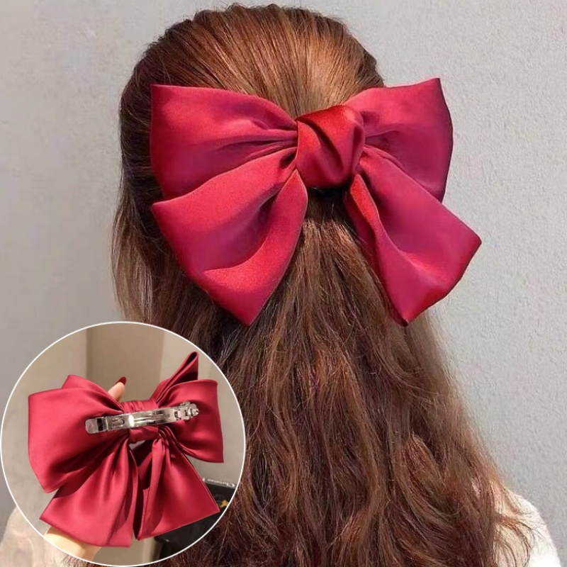 Fashion girl red big bow hair clip hair accessories Korean women hairpins spring clip on the back of the head hair styling tools
