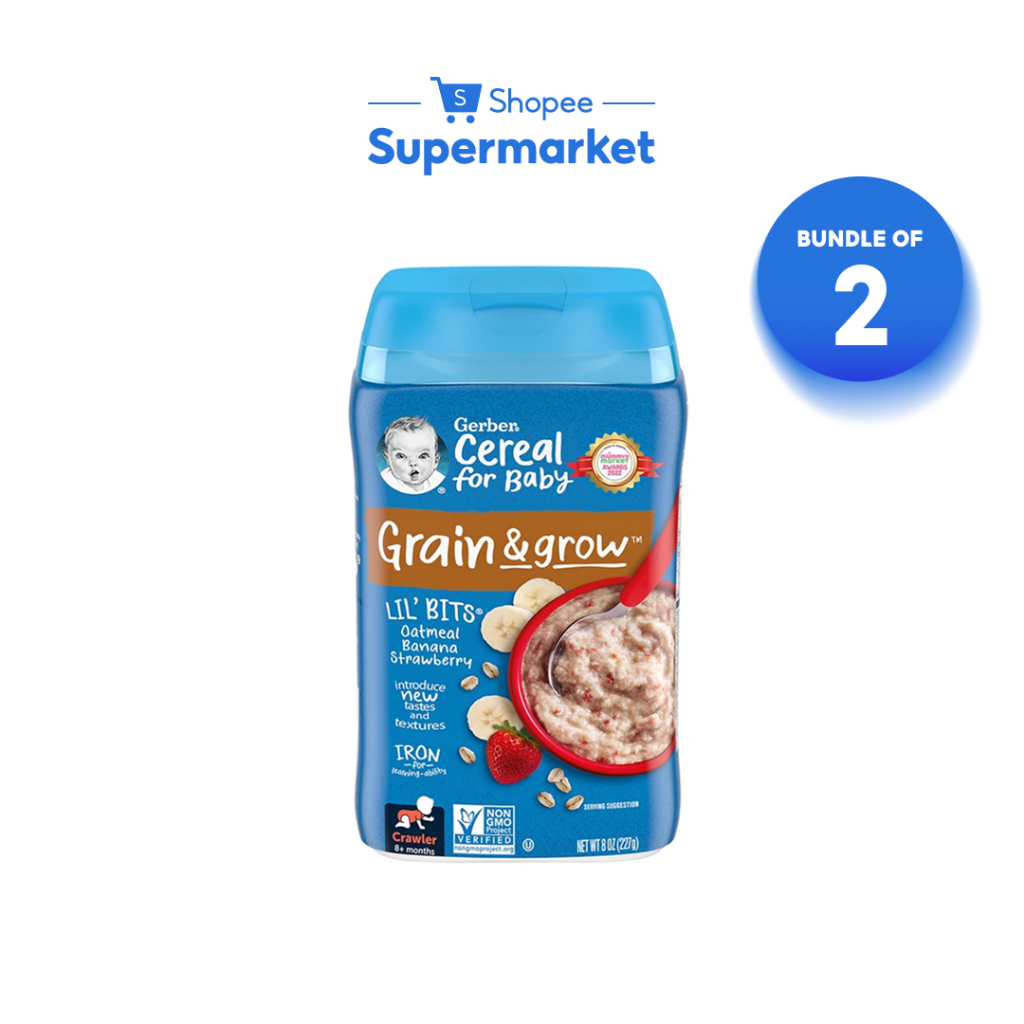 [Bundle of 2] Gerber Lil' Bits Oatmeal Banana Strawberry Baby Cereal (227g)