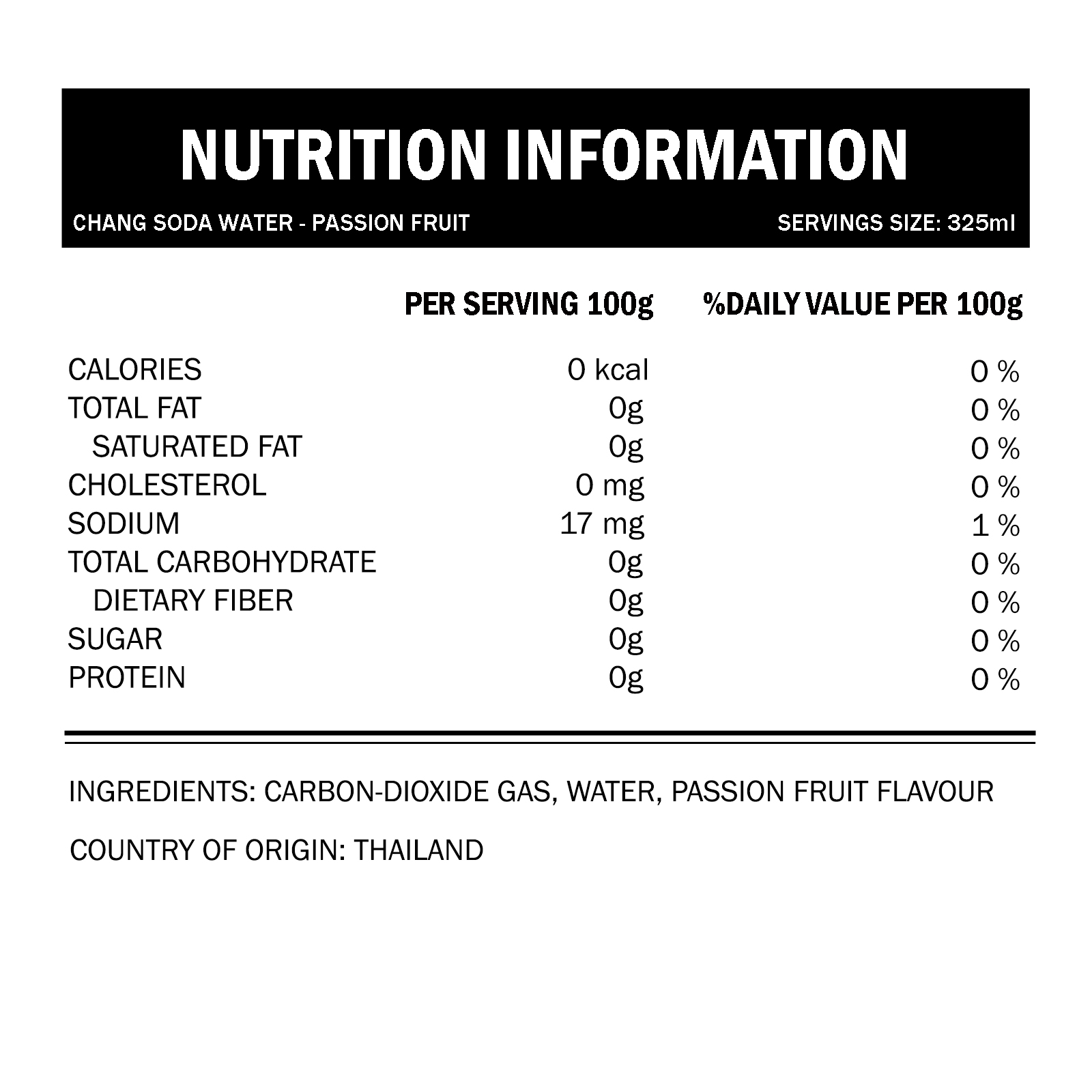 [1 Carton] Chang Soda Water Passion Fruit Flavour (24x325ml)