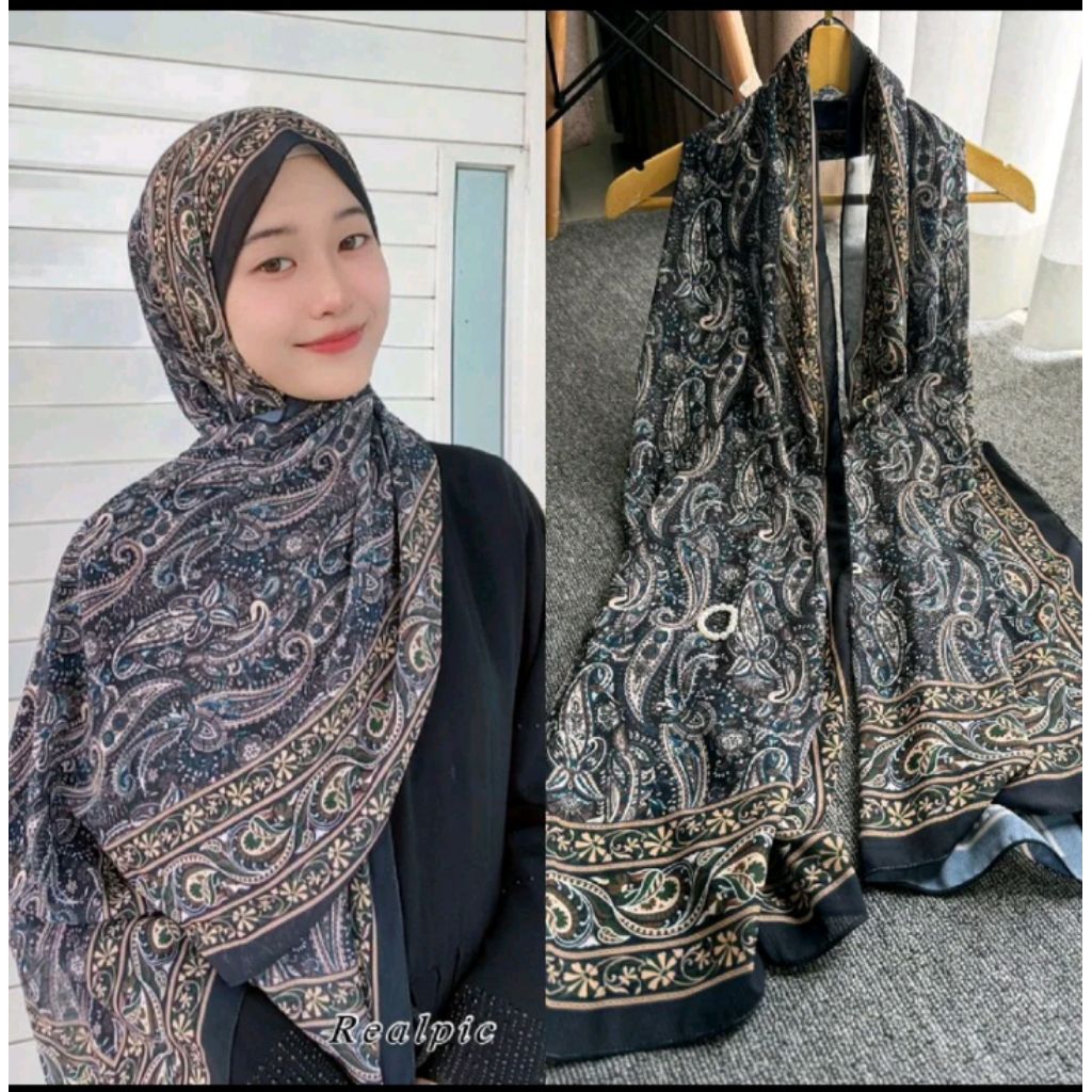 TURKISH PASHMINA CERUTY ARABIAN ETHNIC SHAWL CASHMERE MOTIF VIRAL 180X70 VIRAL PASHMINA EDGE SEWING