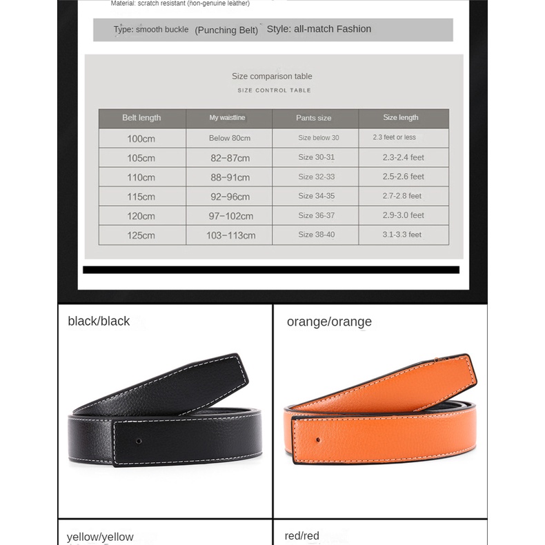 Belt Men's Genuine Leather h Smooth Buckle Belt Body Belt Men's Pants Belt