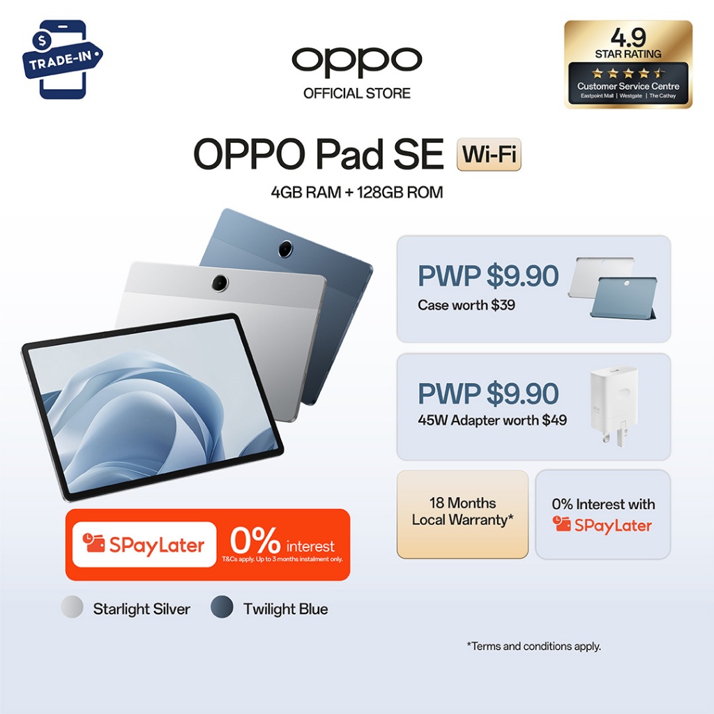 [18 Months Warranty] OPPO Pad SE Tablet | Wi-Fi 8(4+4GB)+128GB | 9340mAh | 33W SUPERVOOC | Immersive Eye-Care Display