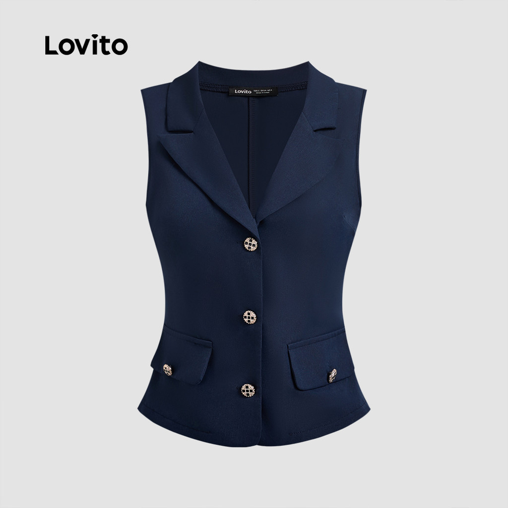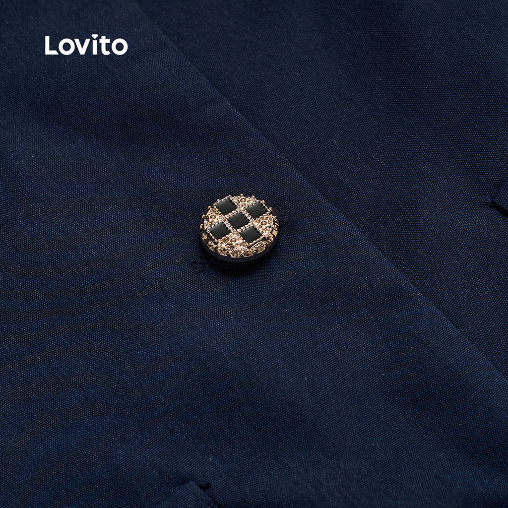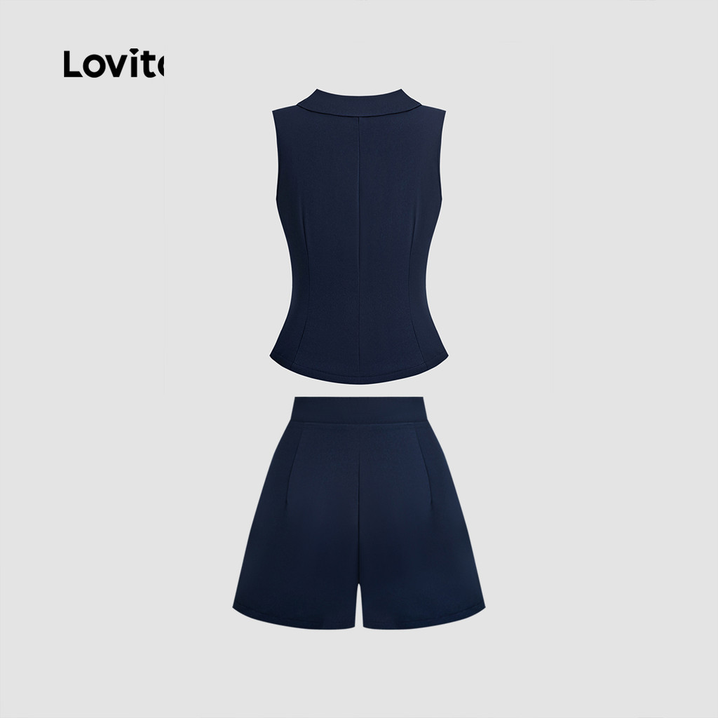 Elegant Shorts Sets Commute Button Spring/summer Navy Blue Top Shorts Sets for Women L138ED058