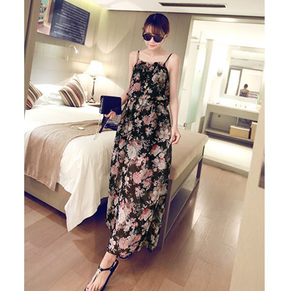 Bohemian Fresh Floral Print Sleeveless Sexy Maxi Dress