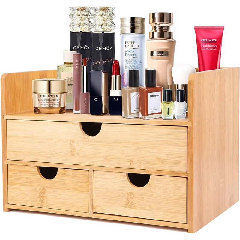 Multi-purpose storage box, cosmetic shelf with high-quality bamboo wood drawers
