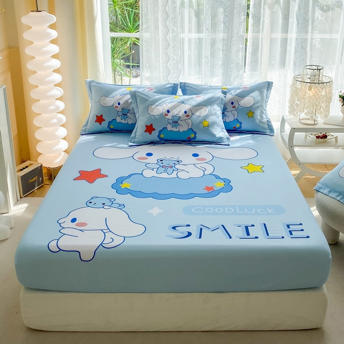 【CADAR】1 PC Cartoon Style Robot Print Bedsheet For Children Thickend Skin-Friendly Brushed Non-Slip Fitted Sheet Single Queen King High Elastic Band All-Included Bed Mattress Cover