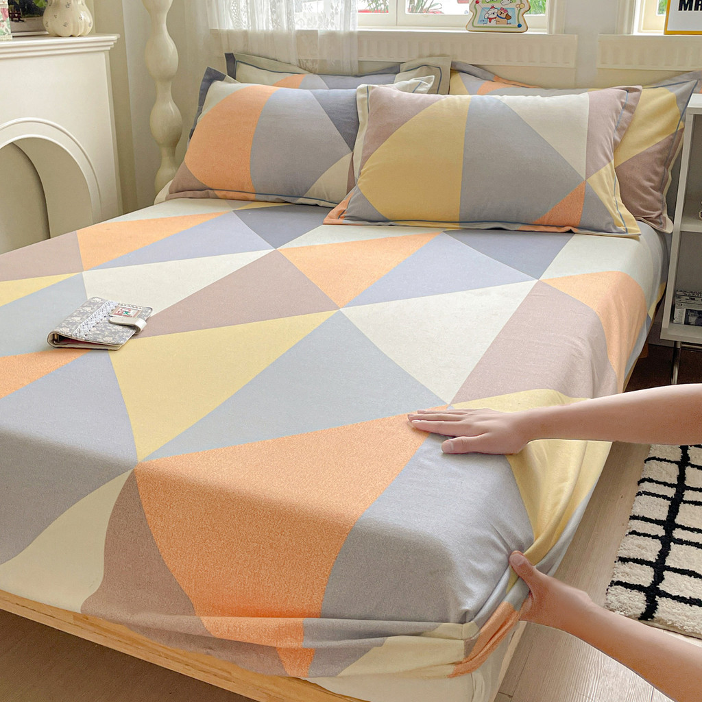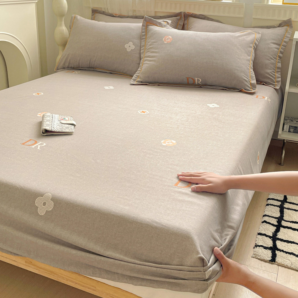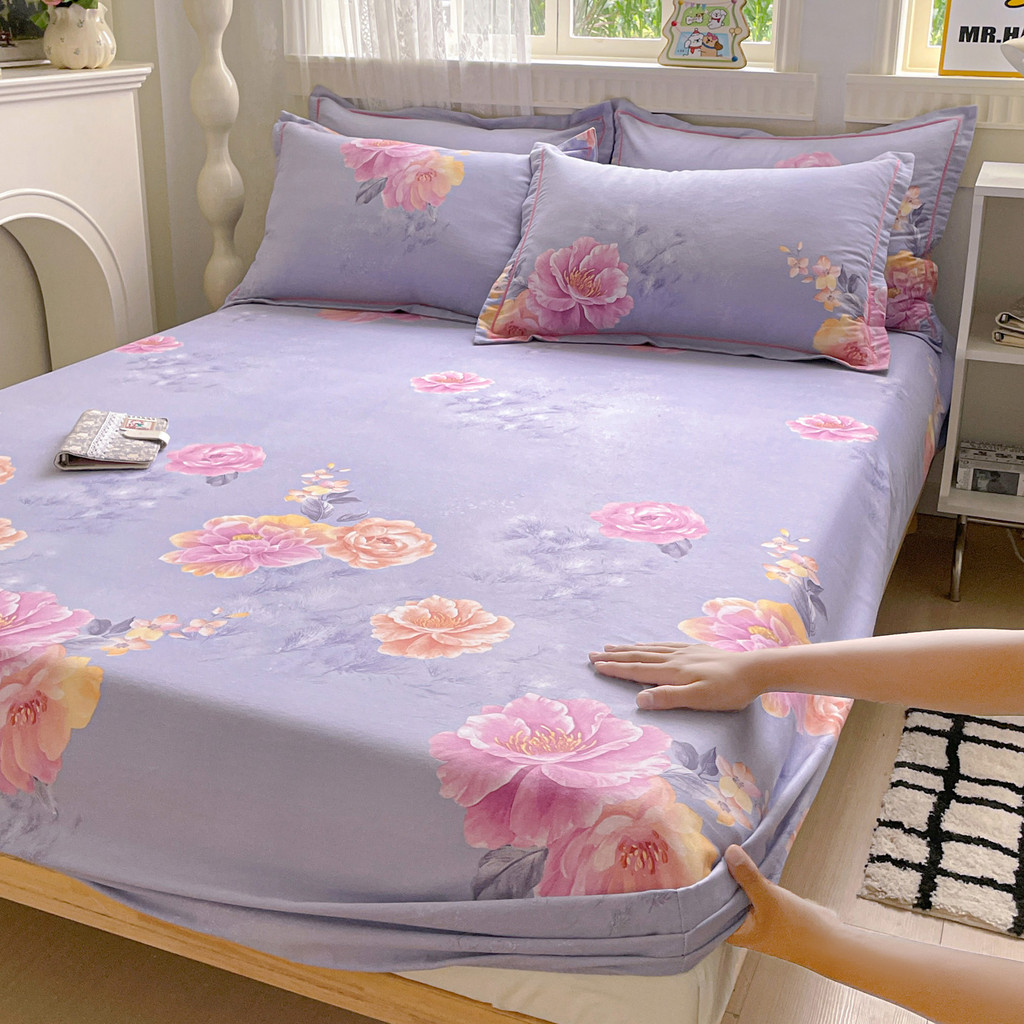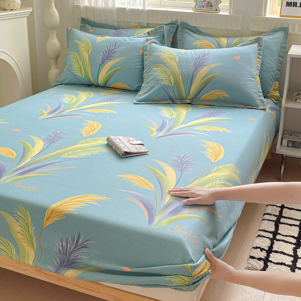 Cadar 1 PC 100% Cotton Blue Flowers Print Brushed Fitted Sheet Fashion INS Style Bed Mattress Cover Single/Super Single Queen King/Super King Size Bedsheet
