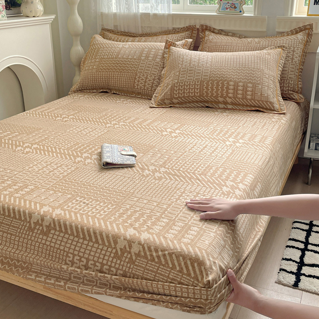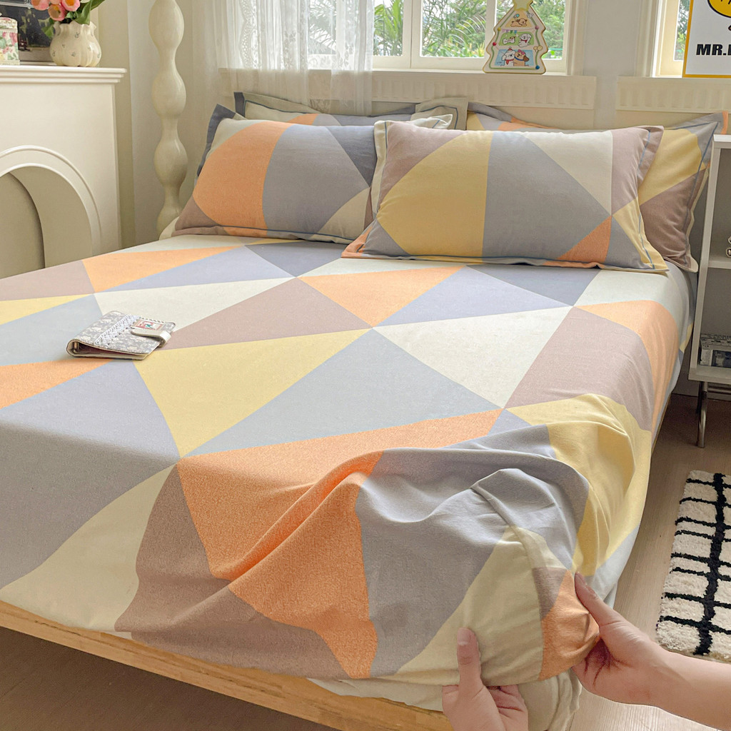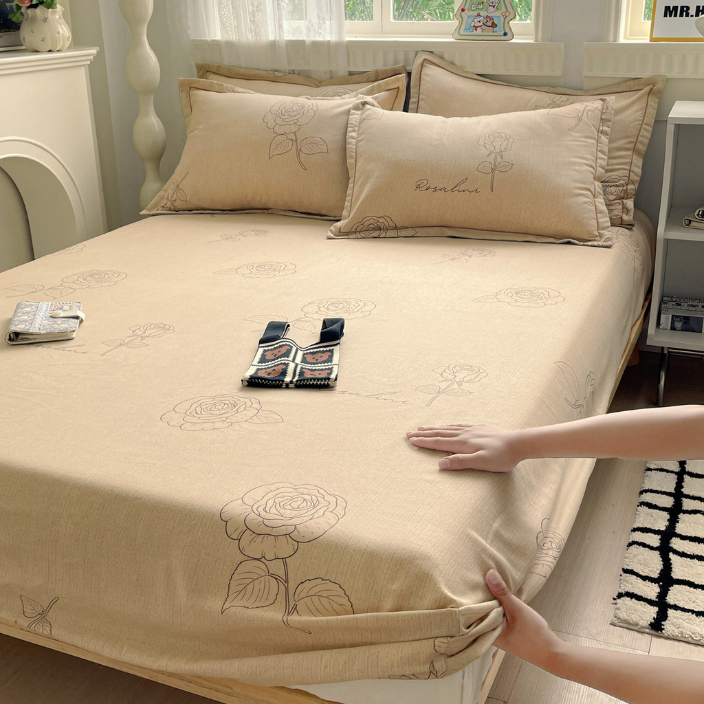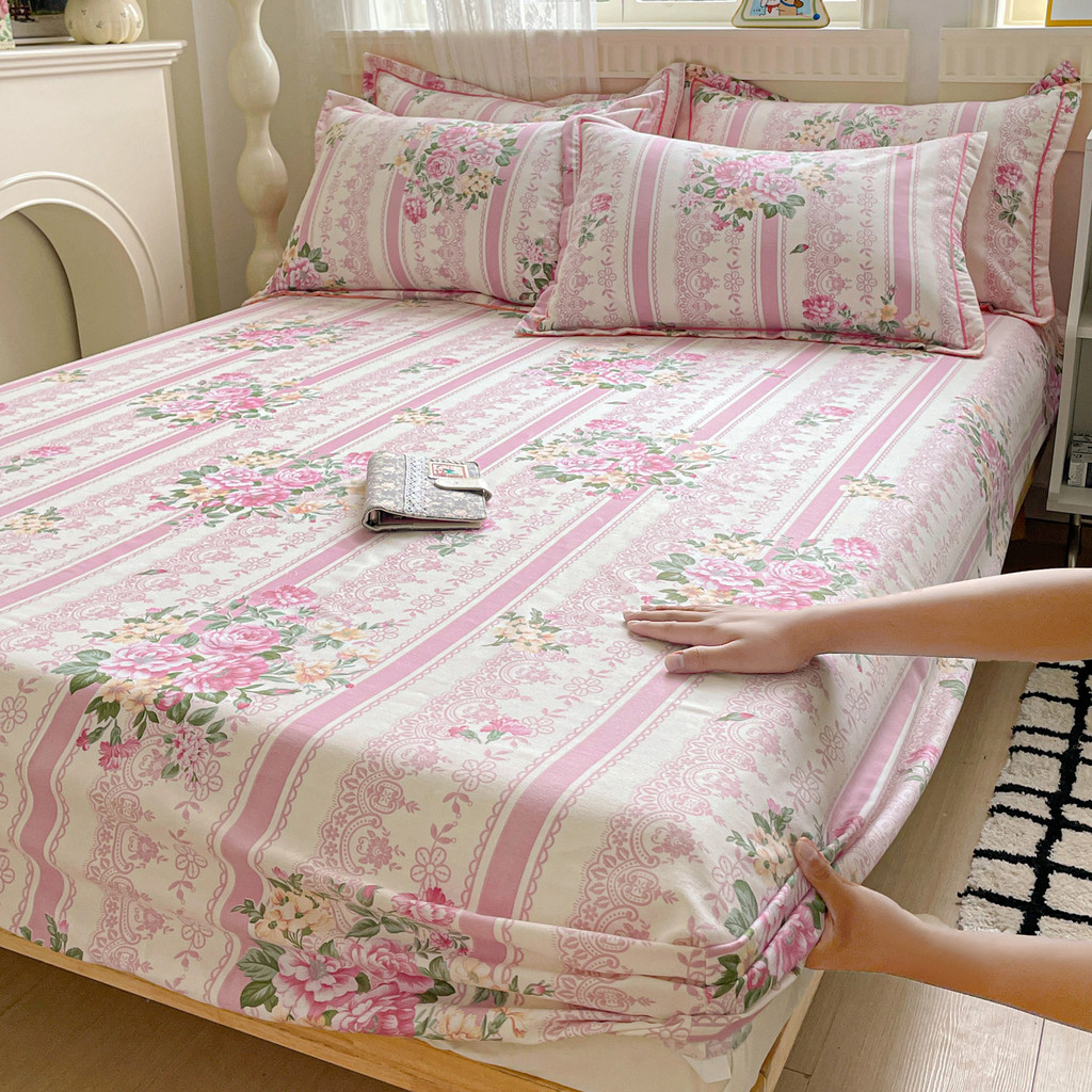 Cadar 1 PC 100% Cotton Blue Flowers Print Brushed Fitted Sheet Fashion INS Style Bed Mattress Cover Single/Super Single Queen King/Super King Size Bedsheet