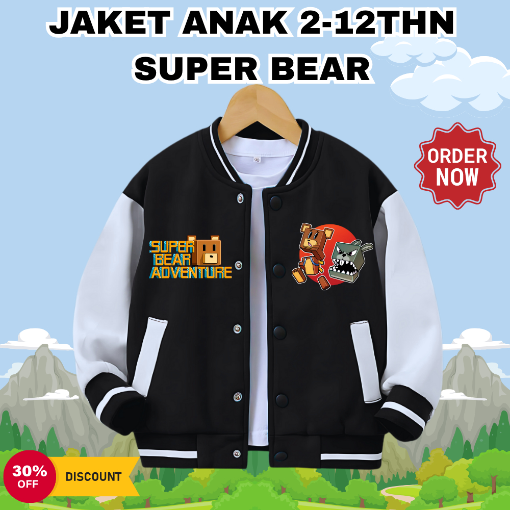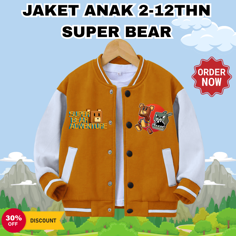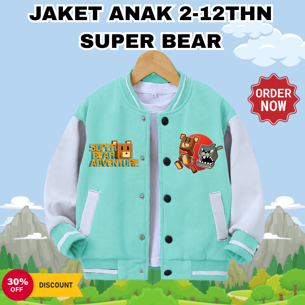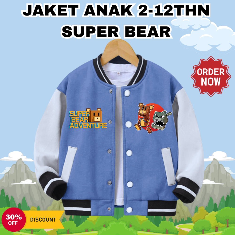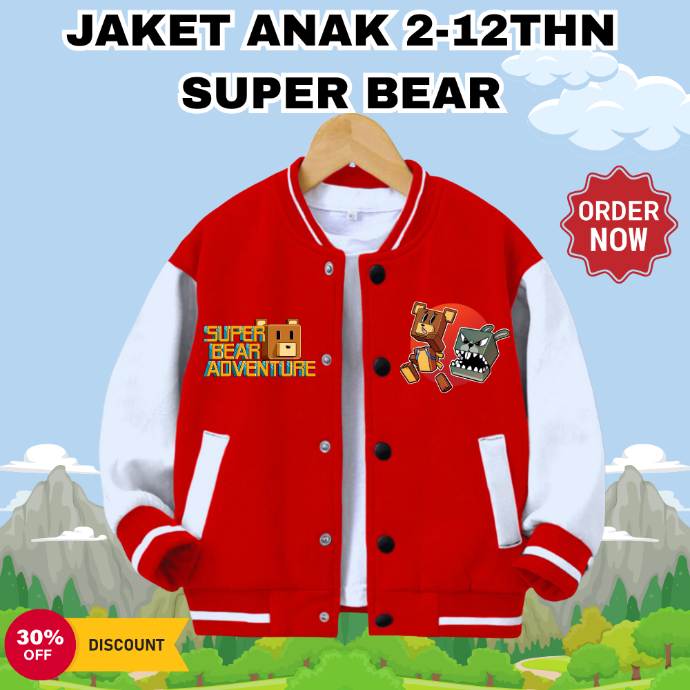 SUPER BEAR ADVENTURE BASEBALL & ZIPPER JACKET FOR KIDS SUPER BEAR UNISEX FOR BOYS AND GIRLS AGED 2 - 12 YEARS kids jacket
