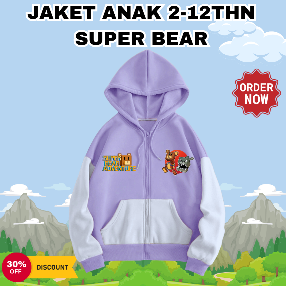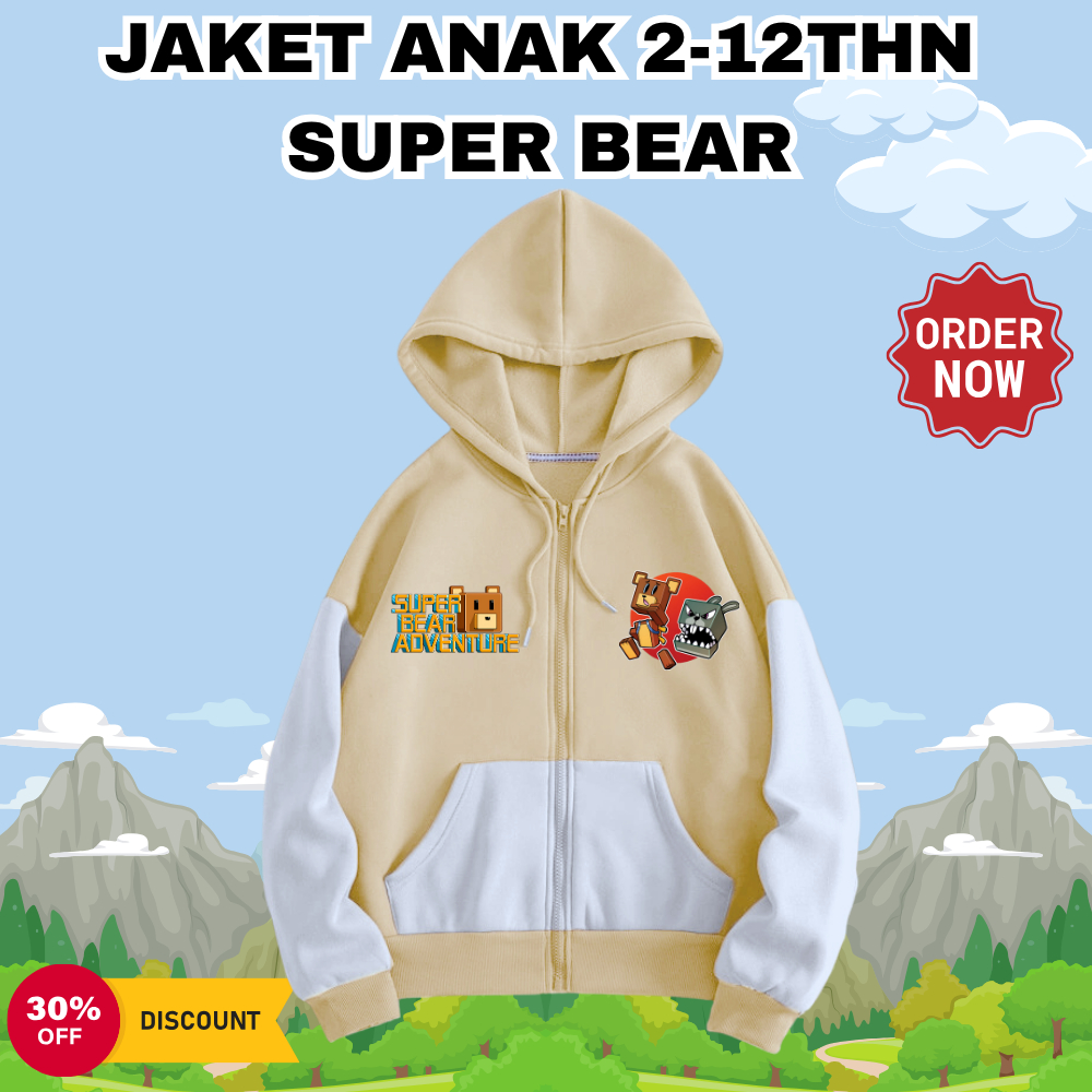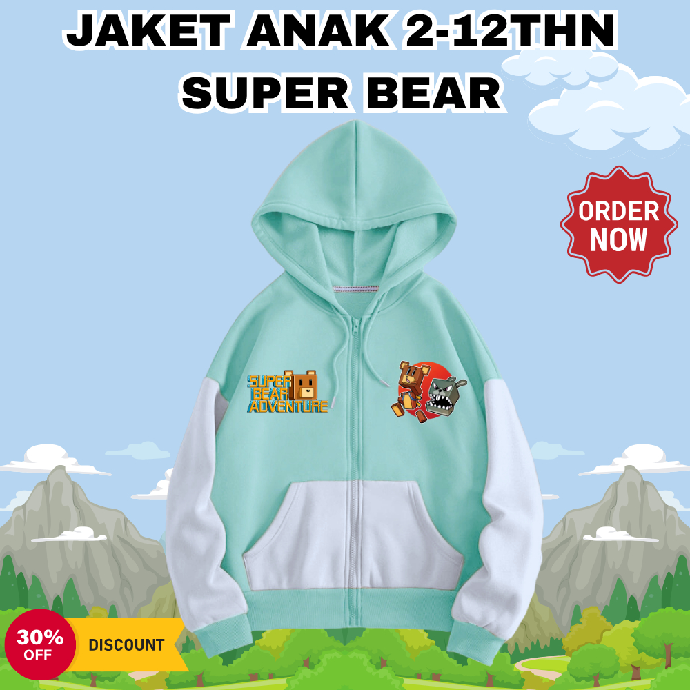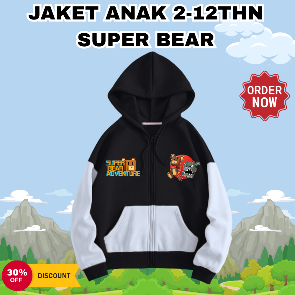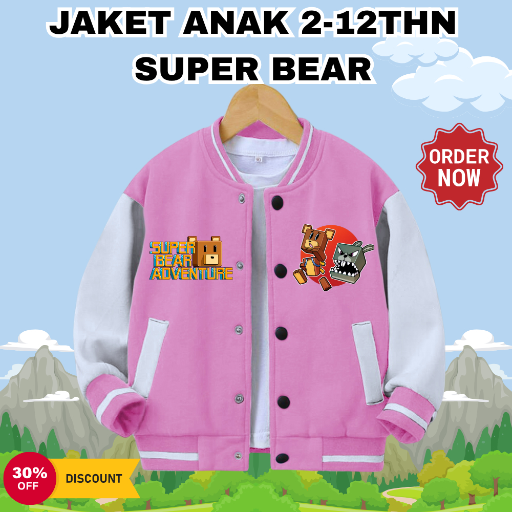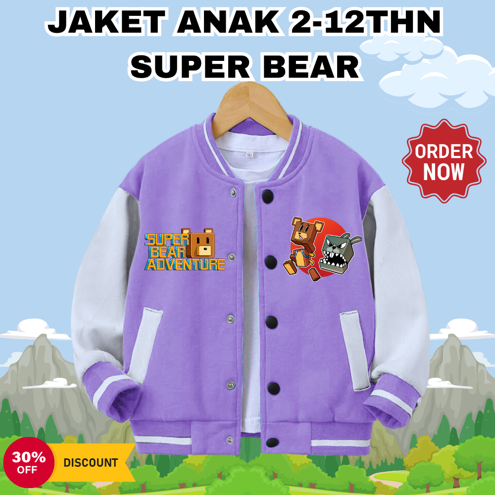 SUPER BEAR ADVENTURE BASEBALL & ZIPPER JACKET FOR KIDS SUPER BEAR UNISEX FOR BOYS AND GIRLS AGED 2 - 12 YEARS kids jacket