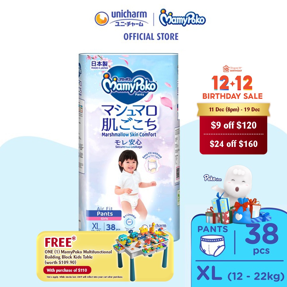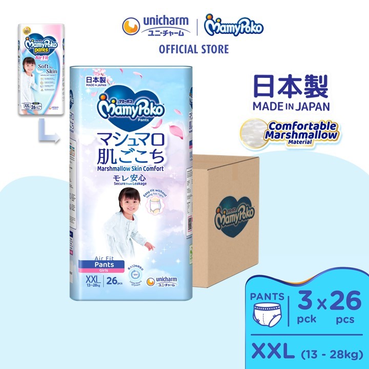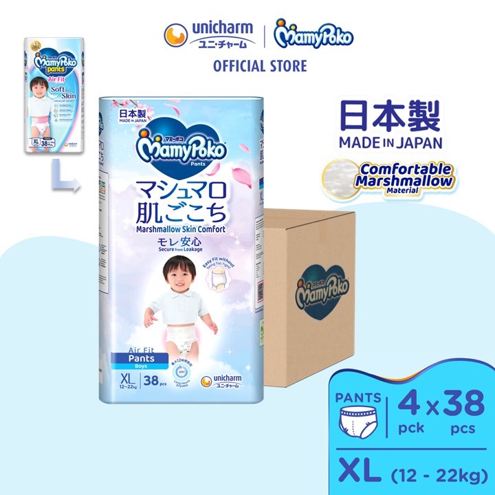 MamyPoko Air Fit Marshmallow Pants Super Premium Baby Diapers [BOY&GIRL] M58/L44/XL38/XXL26 (Carton)