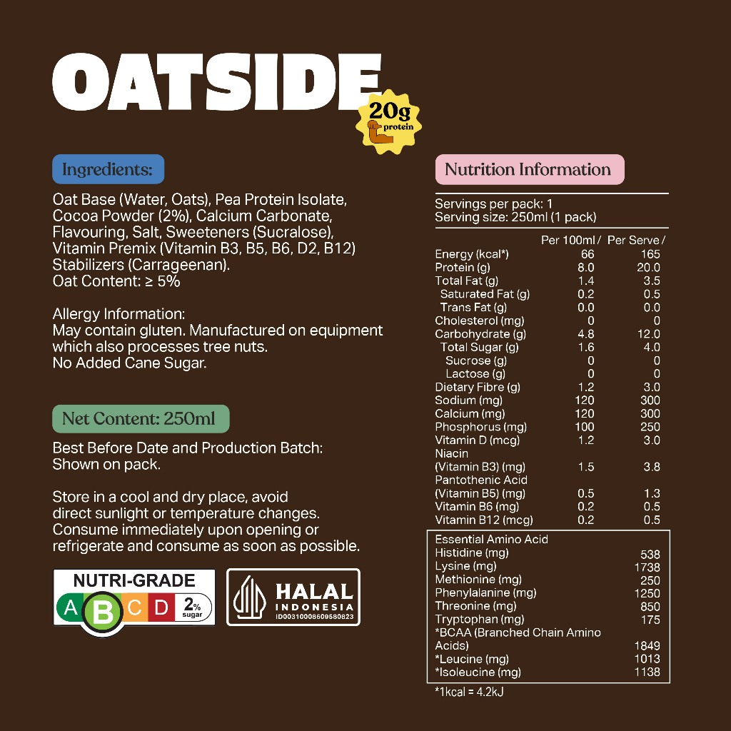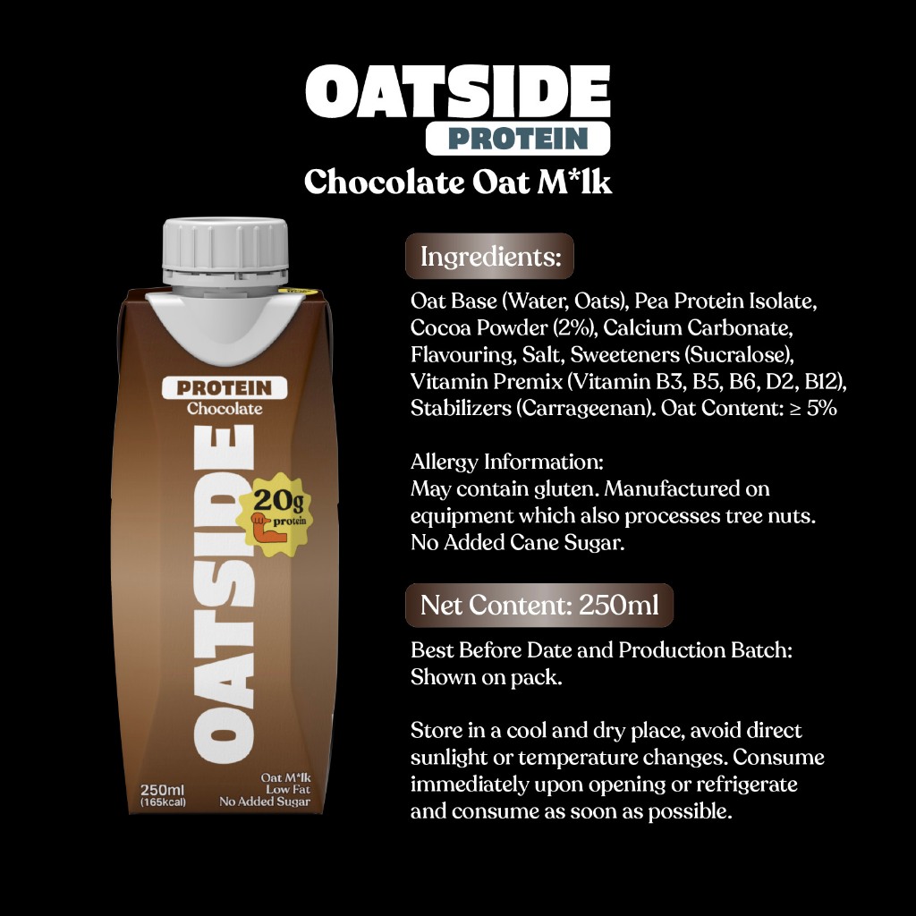 OATSIDE Protein Chocolate Oat Milk 250ml x 24 [1 Case]- 20g Protein Drink, 3000mg BCAA, Dairy Free