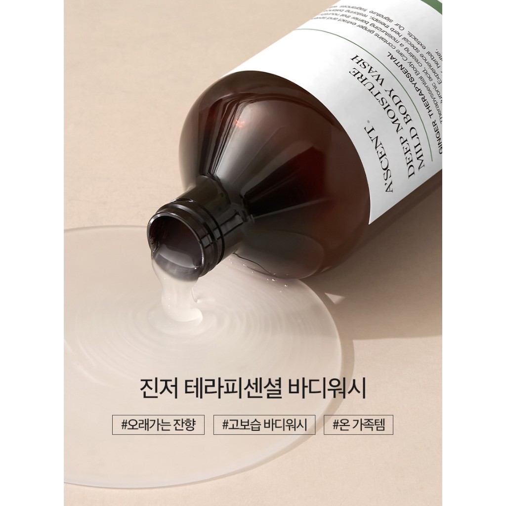 A'SCENT Ginger Therapyssential Bodywash 1000ML/ Ginger + 6 types of herb therapy/ body balance care/ 7 layers hyaluronic acid/ mild acid body wash/ improved skin texture