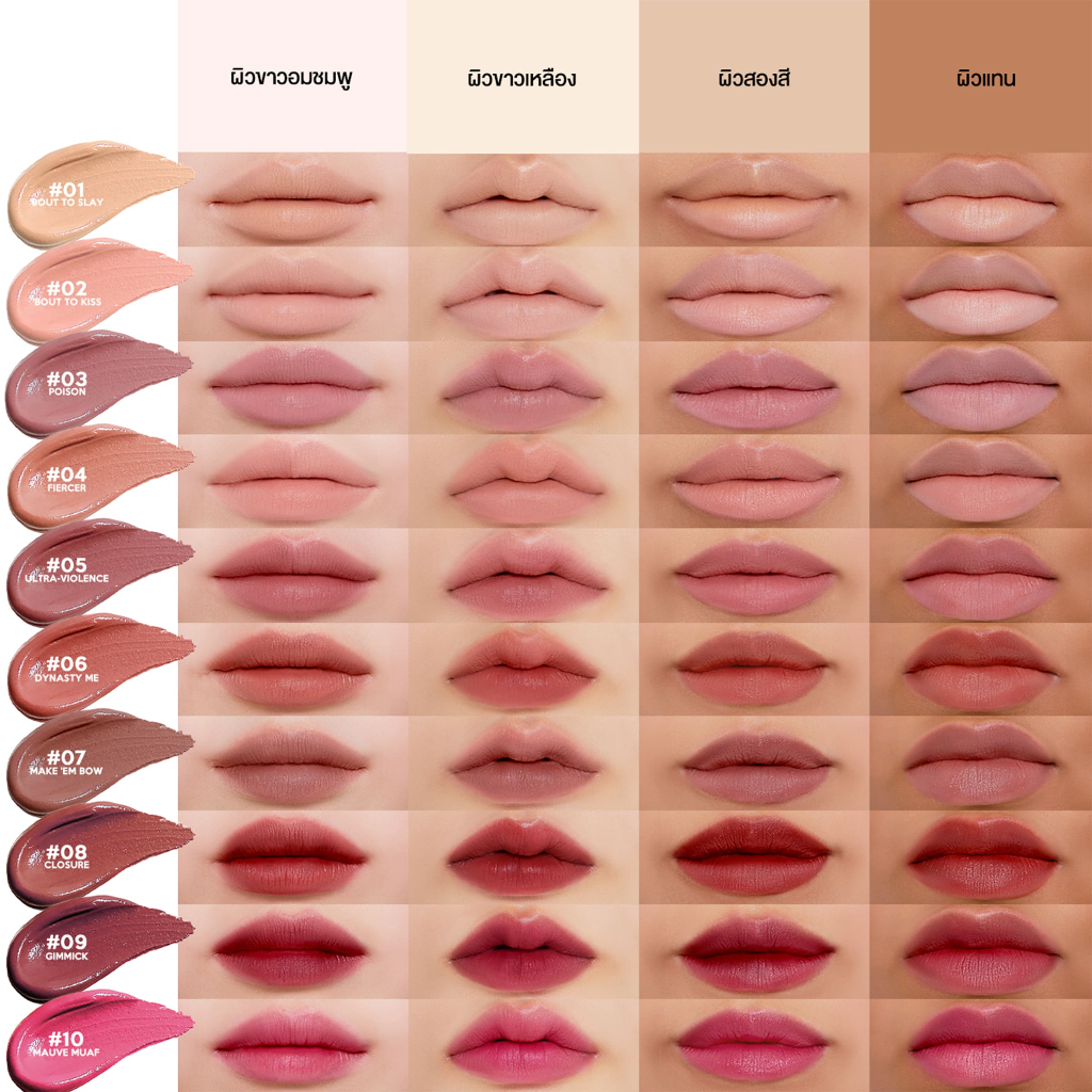 LA GLACE-ULTIMATE BADDIE LIP MATTE (24g.) Soft Lipstick Texture Blurred Groove Dark Lips Can Be Mixed With Many Looks. Matte Lipstick