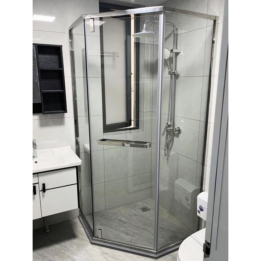 【Customization】Shower Room Diamond-Shaped Glass Bathroom Household Partition Stainless Steel Wet And Dry Separation