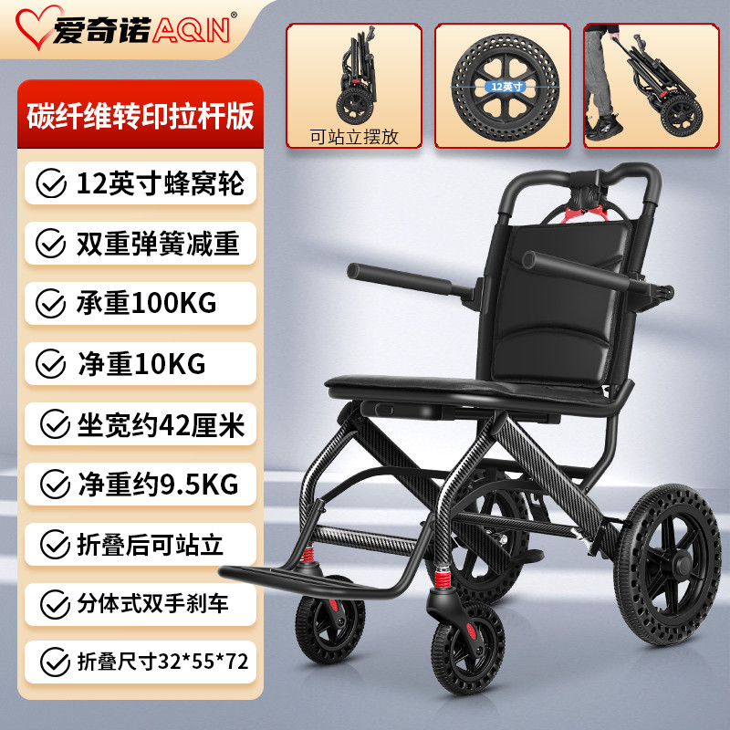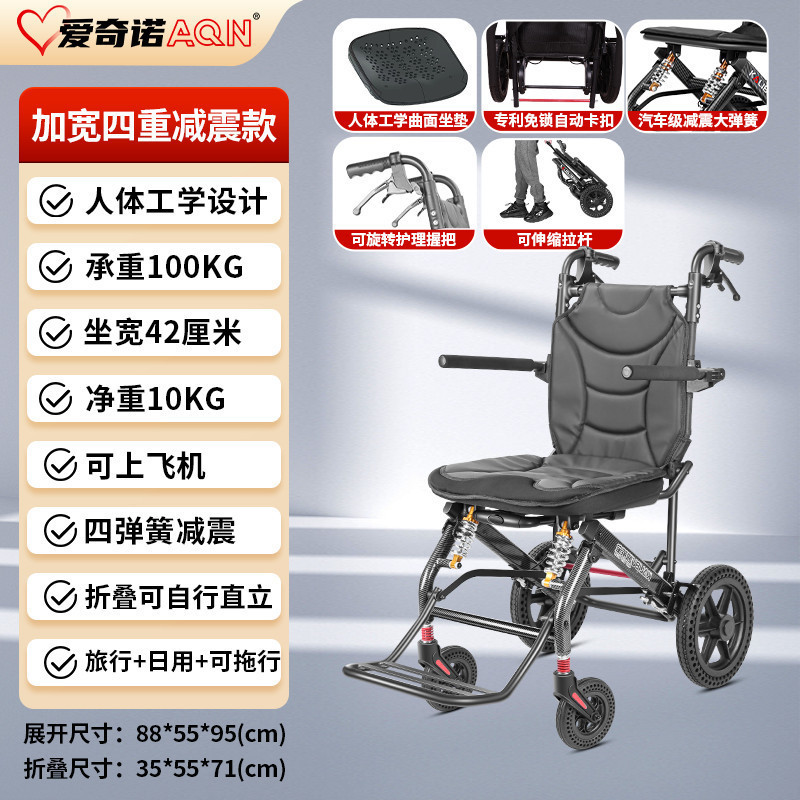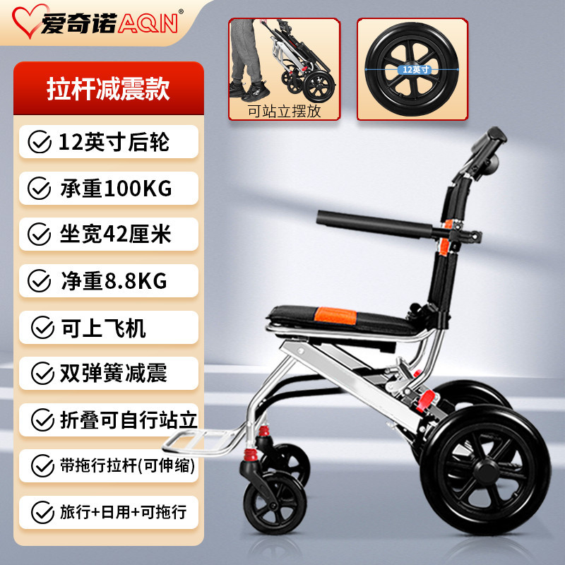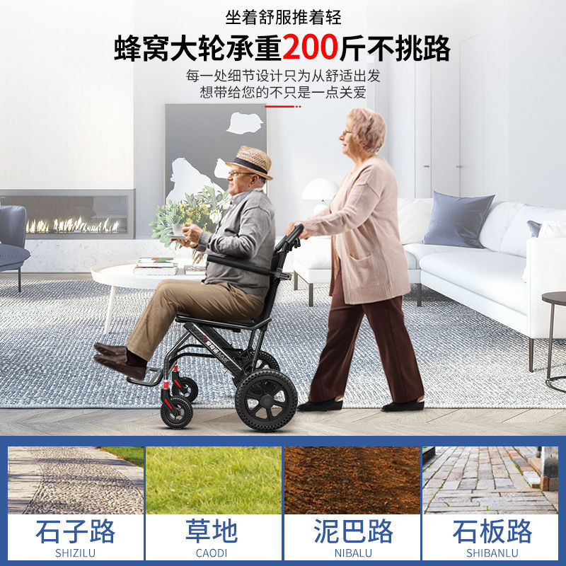 Elderly Wheelchair Foldable Portable Shock-Absorbing Ultra-Light Household Trolley Handicapped Patient Elderly Walker