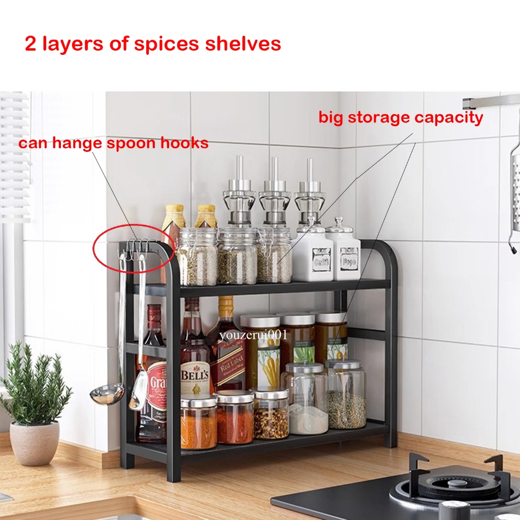 [SINGAPORE STOCK] 2 Tire Condiment Shelf Rack Kitchen Countertop Storage Cabinet Spice Rack Chopsticks Shelf Spice Rack Kitchen Storage