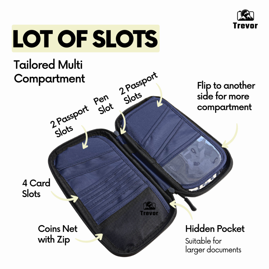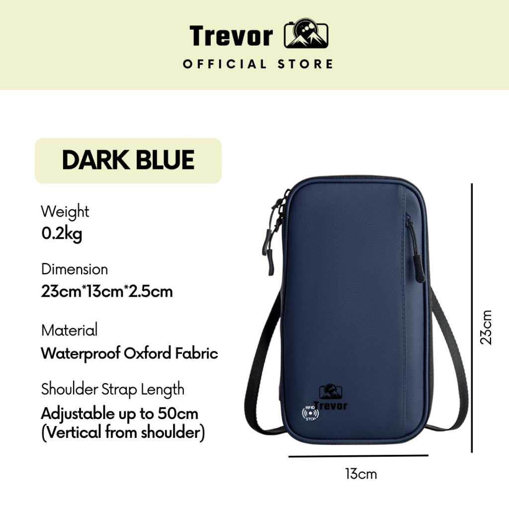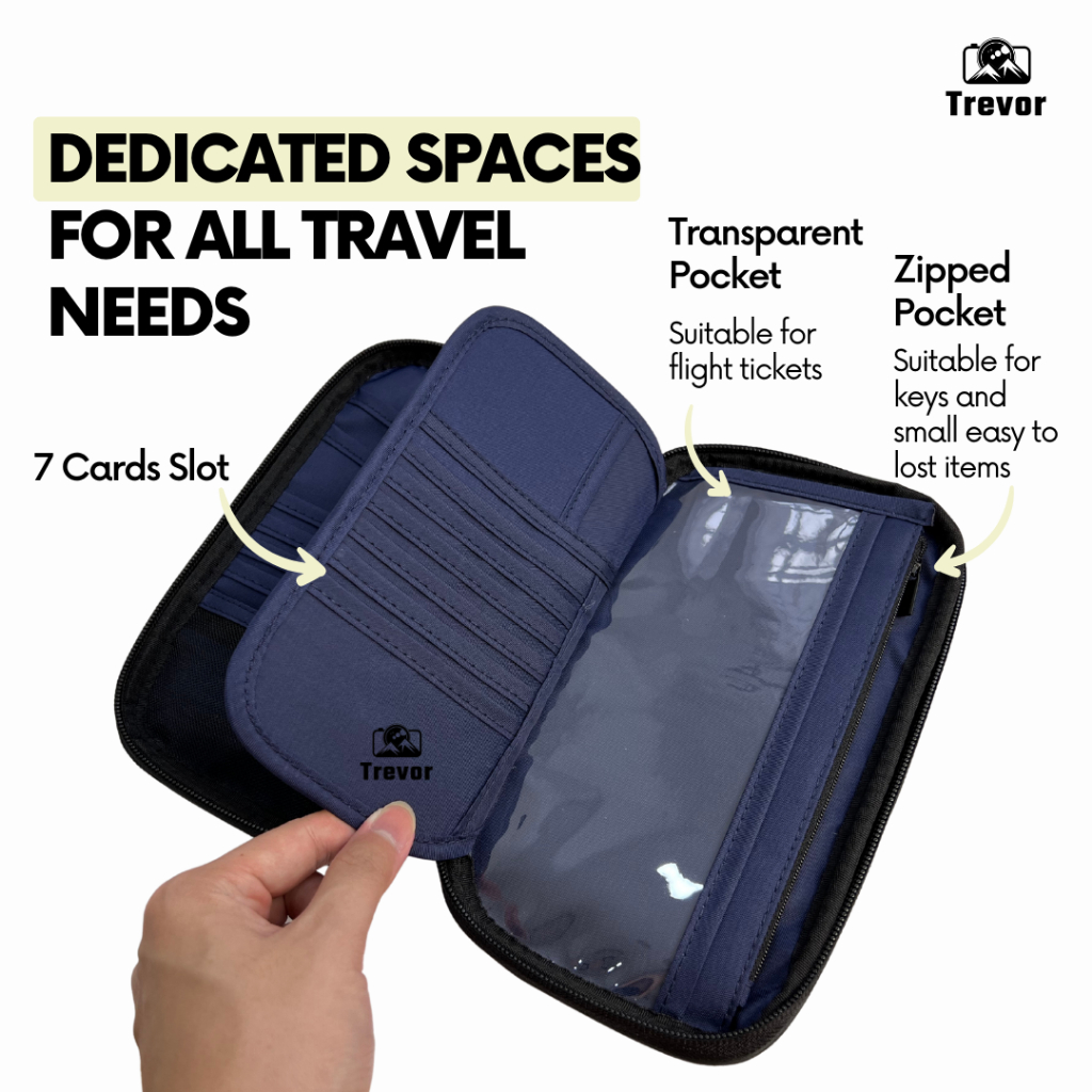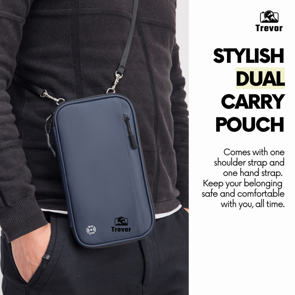 TREVOR Anti-Theft Travel Pouch - Waterproof RFID Phone Documents Passport IC Credit Card Wallet Case Bag Holder Travel Wallet Passport Holder Passport Pouch