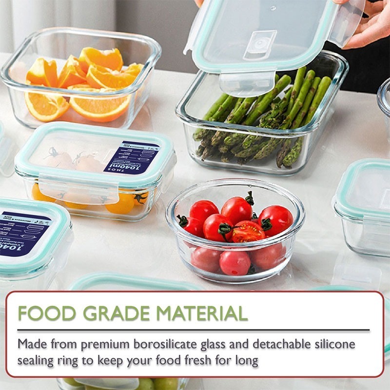Airtight Lunch Box Resistant Glass Microwave Bekas Kaca Makanan Tahan Panas Borosilicate Glass Container Glass Container Food Container Airtight Container