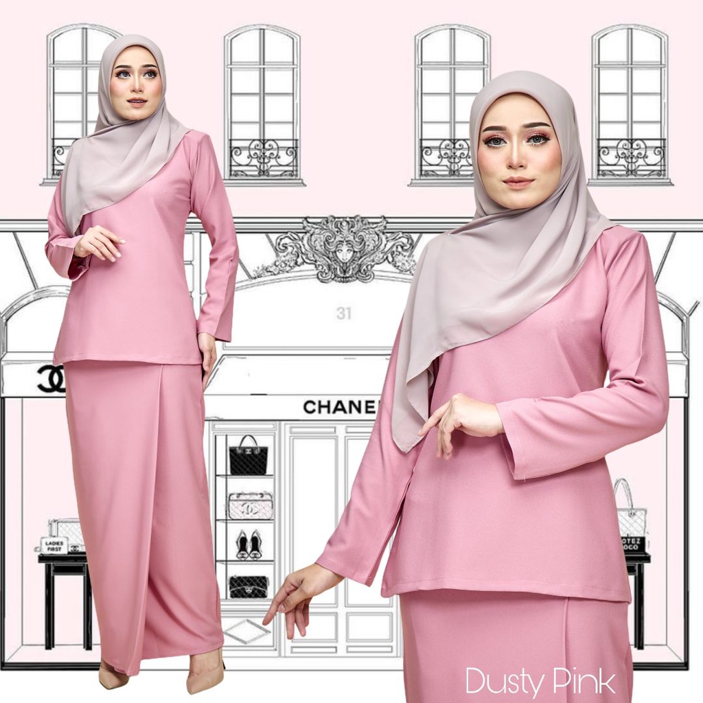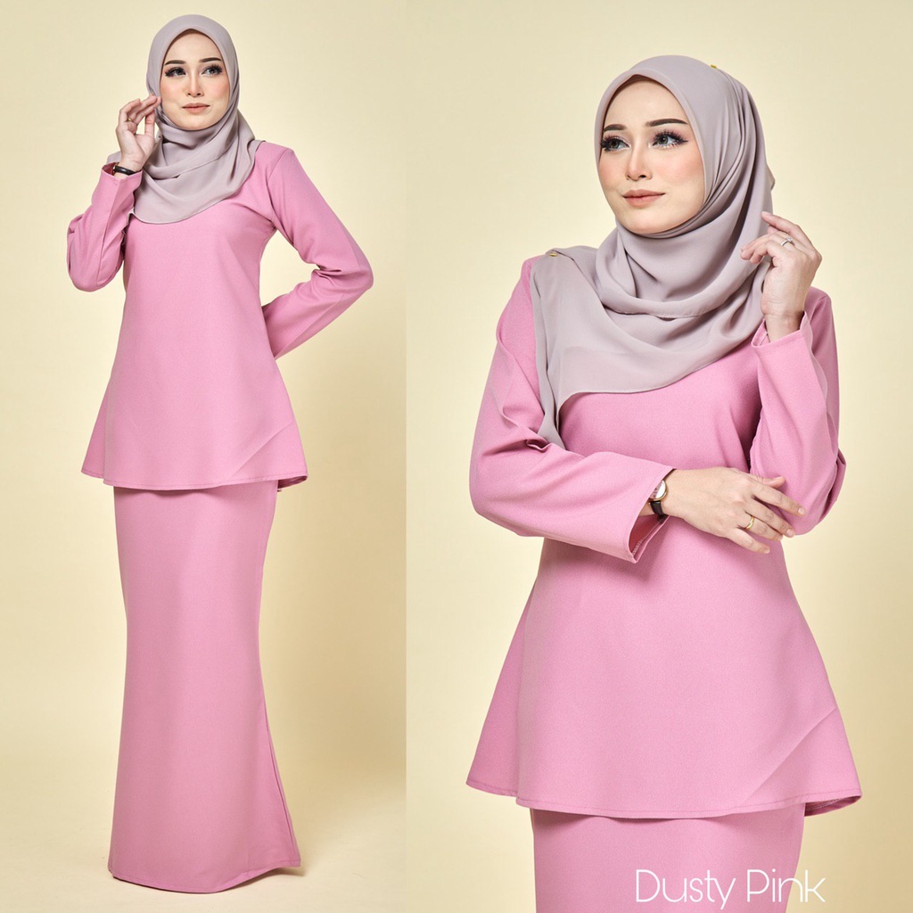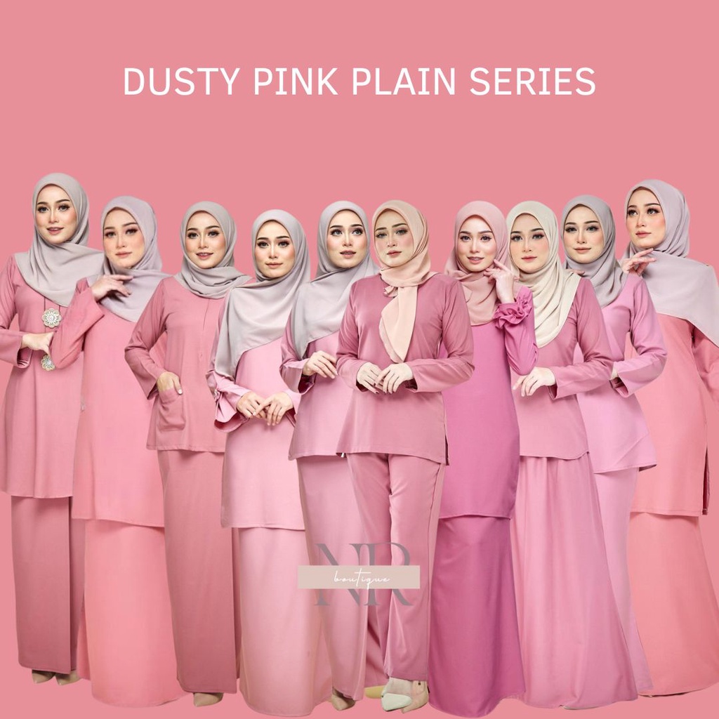 [DUSTY PINK] Basic Plain Baju Kurung Moden Riau Riben Ruffle Suit plussize S-5XL bridesmaid sedondon raya office wear