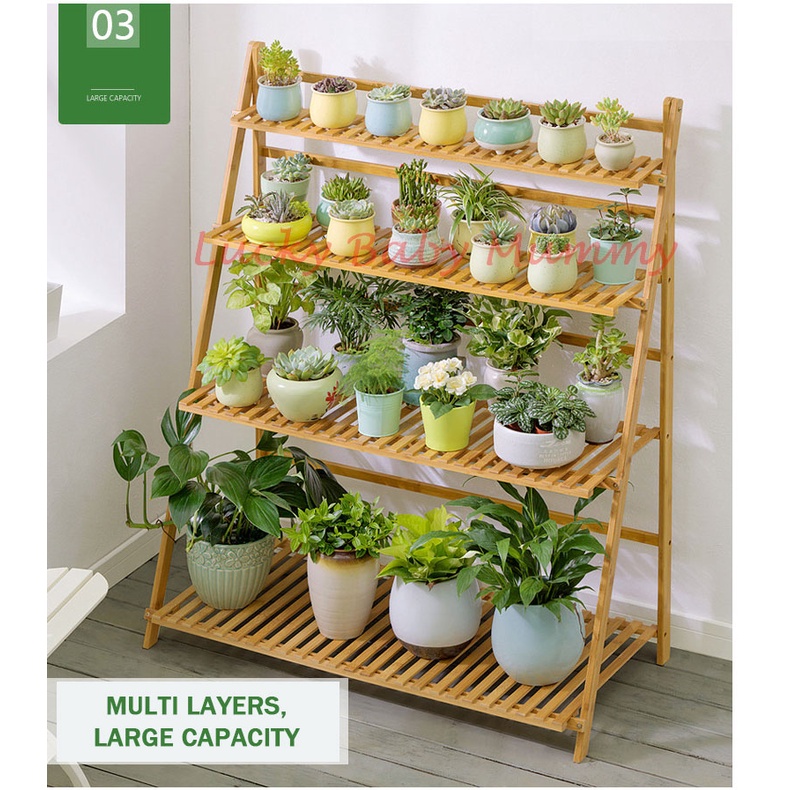 【Type A】3 Tier 4 Tier Plant Rack Flower Stand Flower Rack - 100% natural bamboo - Pretty Display
